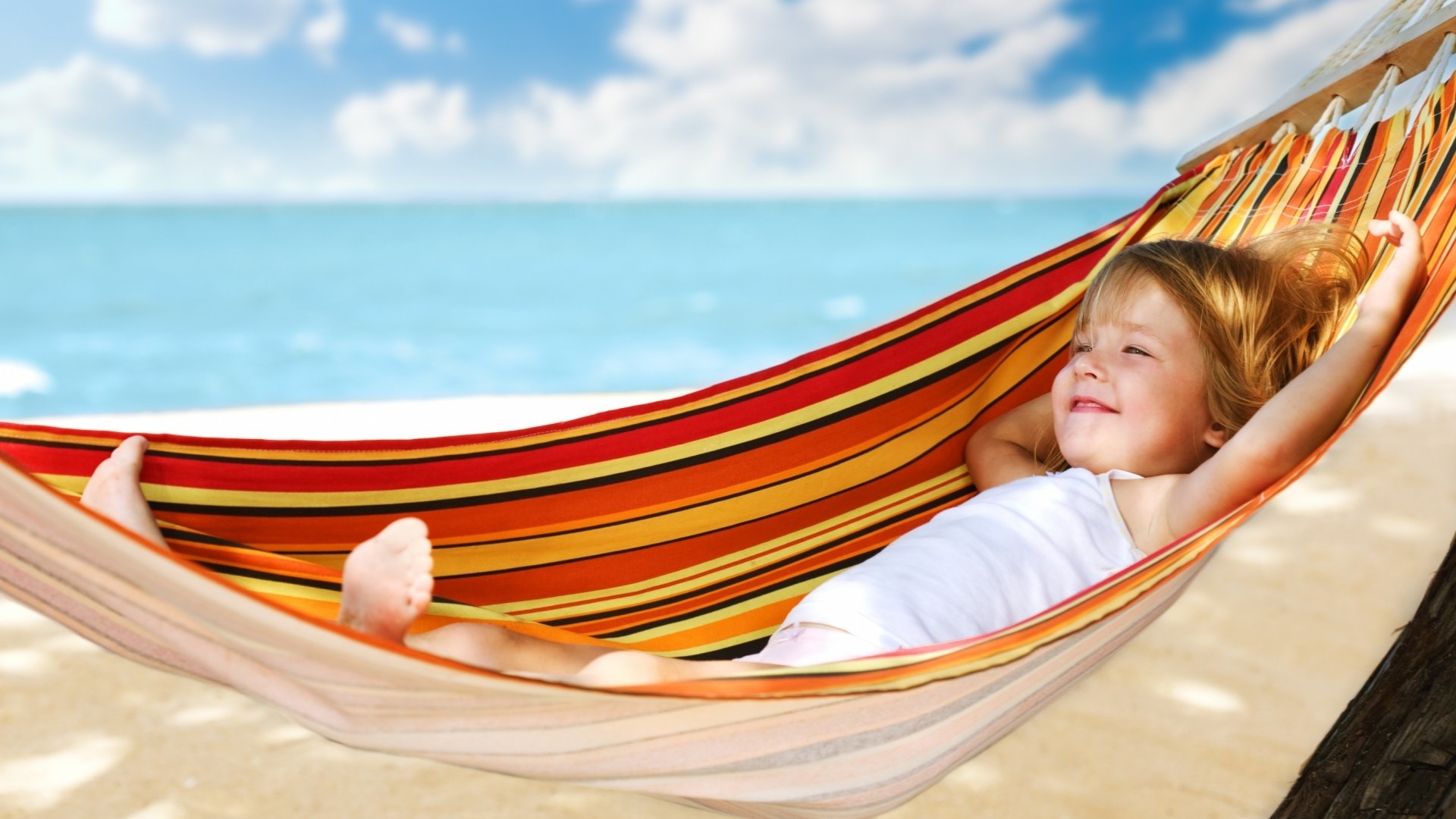 1 张 躺在沙滩吊床摇篮中的金发女宝宝 : 933702