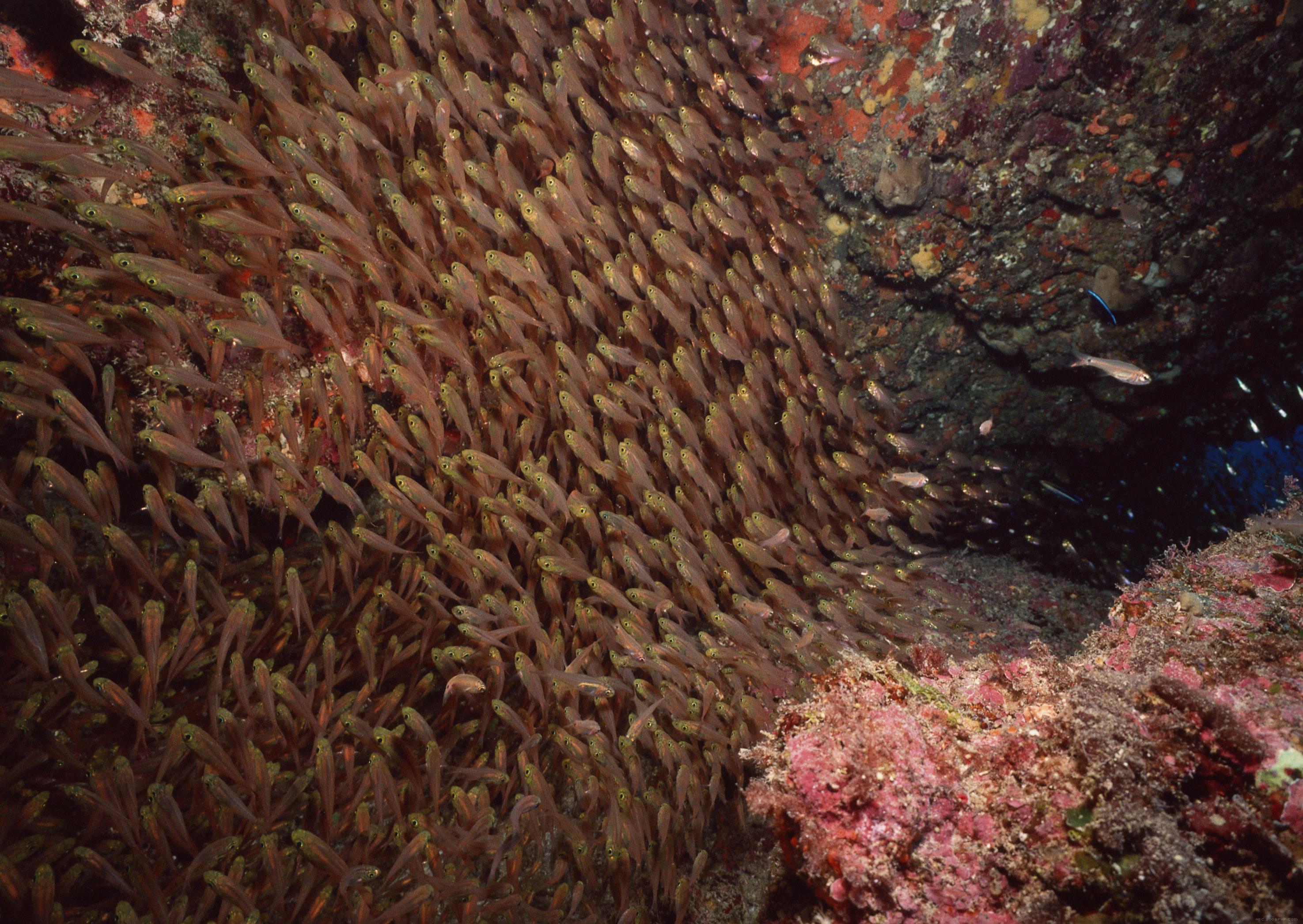 3 张 高清晰深海群鱼寻食壁纸 : 936081