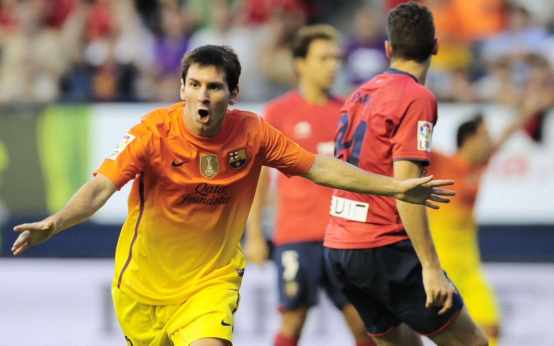 1 张 高清晰进球狂奔的莱昂内尔・梅西球星壁纸 : 919401