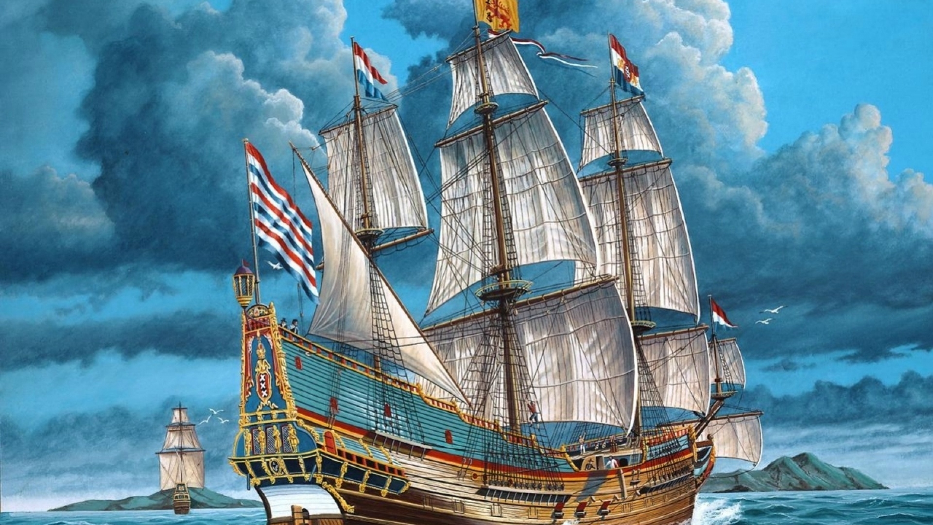 1 张 海上帆船油画风景壁纸 : 951163