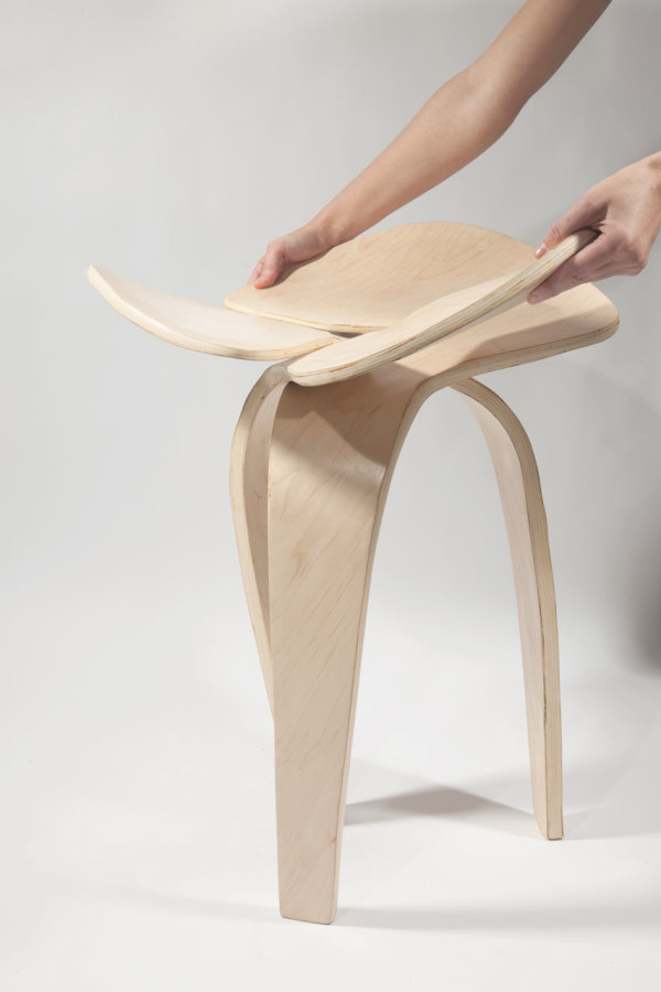 6 张 无接缝的三角凳-纤维家具Andrea Quiros-Balma设计师作品,由三个对称弯曲胶合板连接在一起成一个无缝的椅子 : 938212