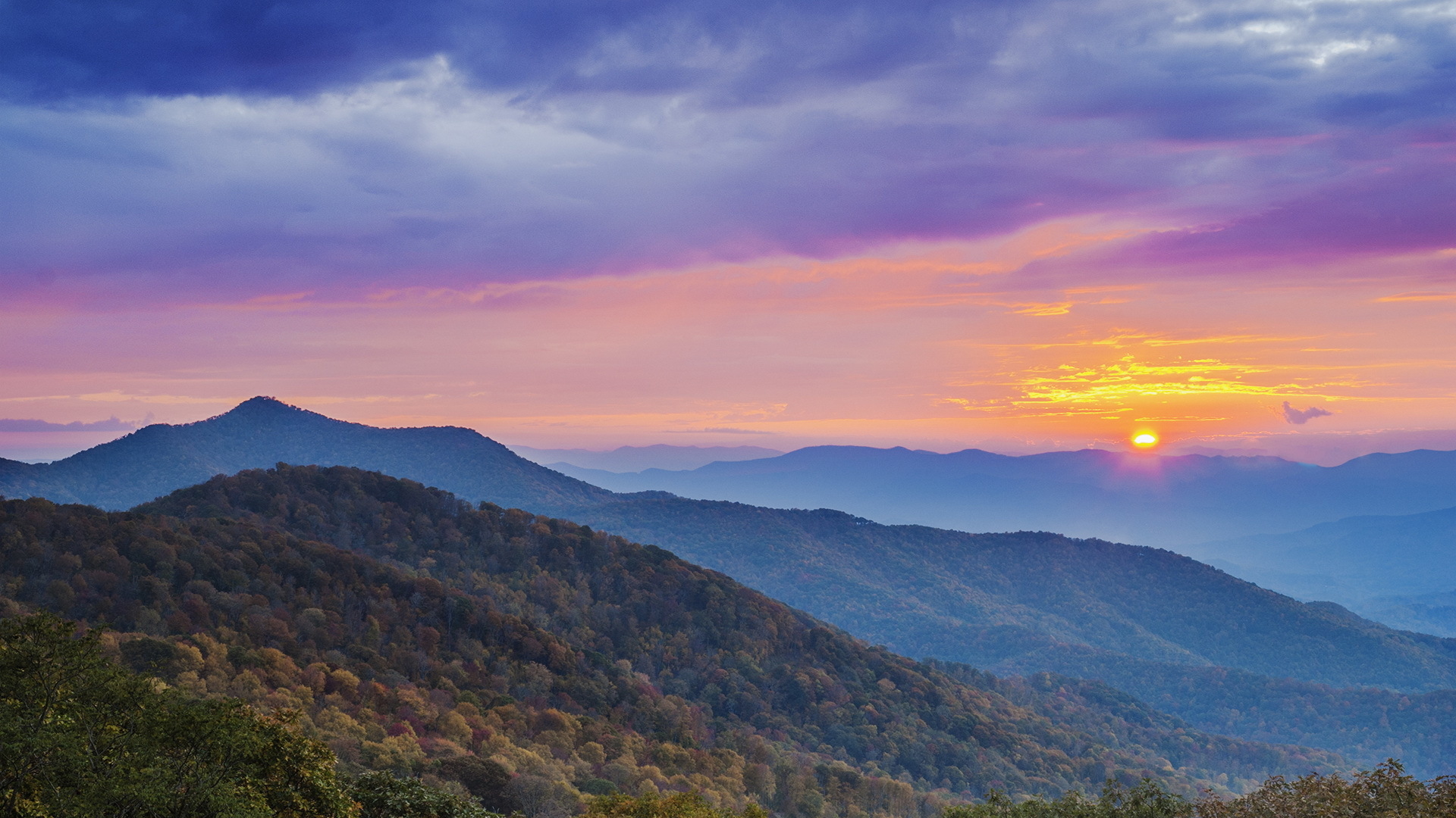 1 张 高清晰黄昏下的群山壁纸 : 939550