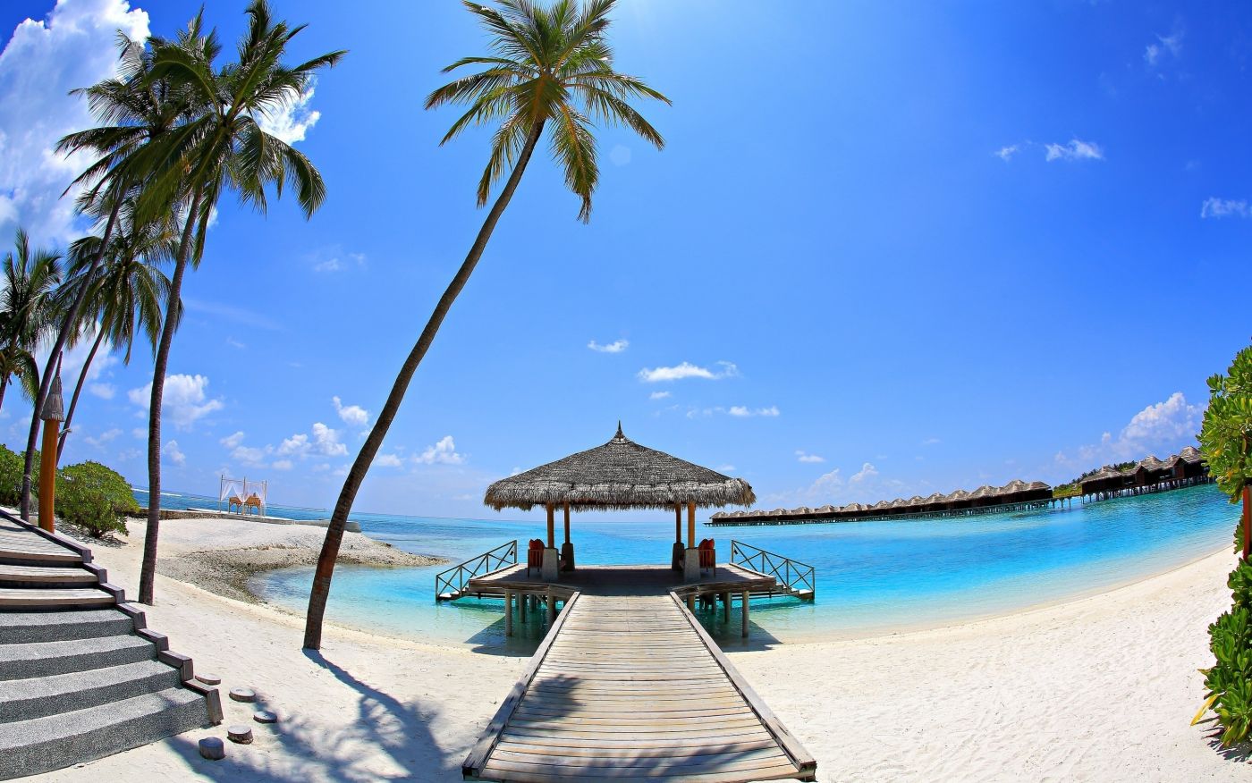 1 张 马尔代夫蓝海度假草屋码头壁纸 : 935415