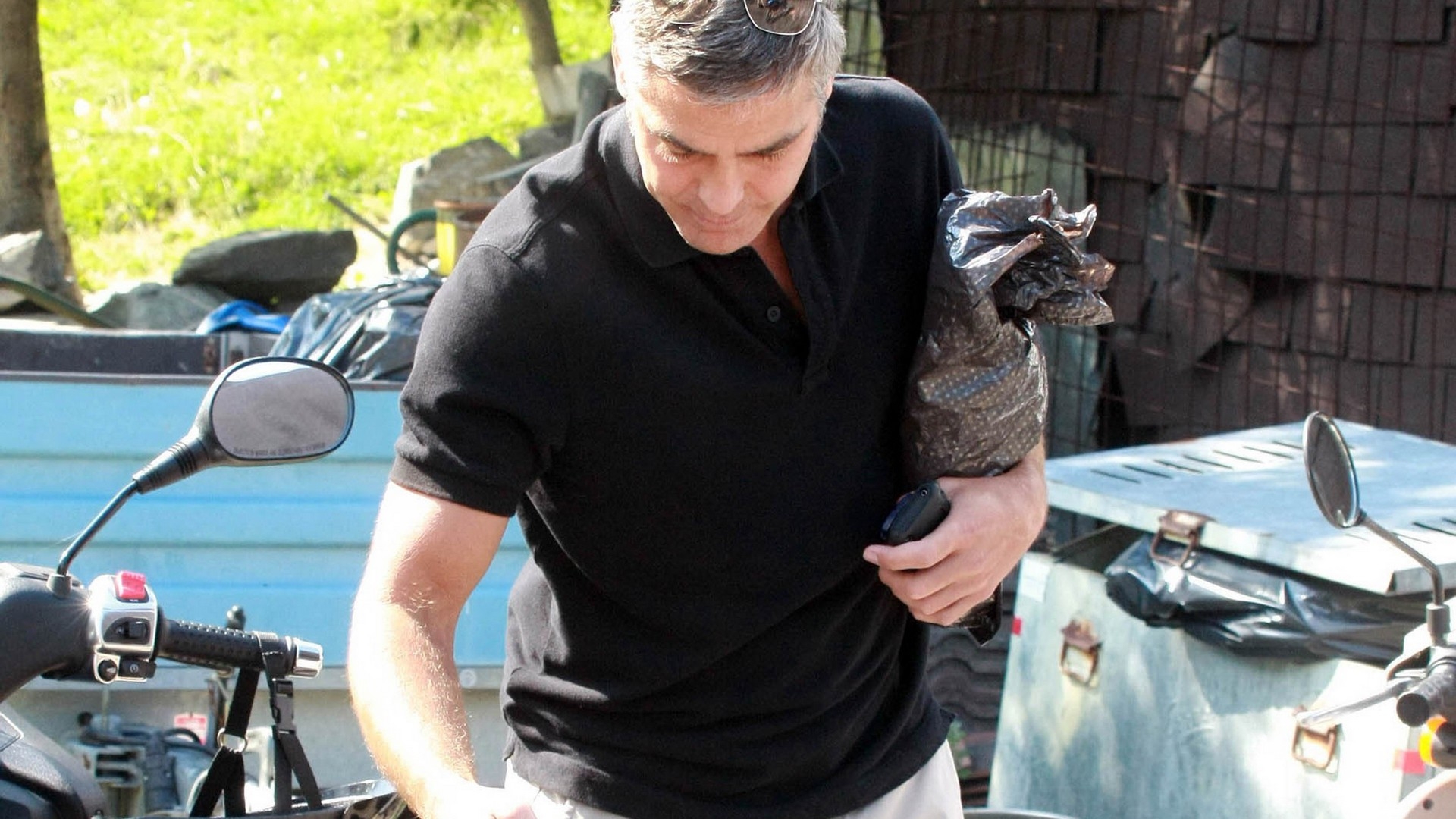 1 张 摩托车前的美国演员George Clooney-乔治・克鲁尼壁纸 : 940545