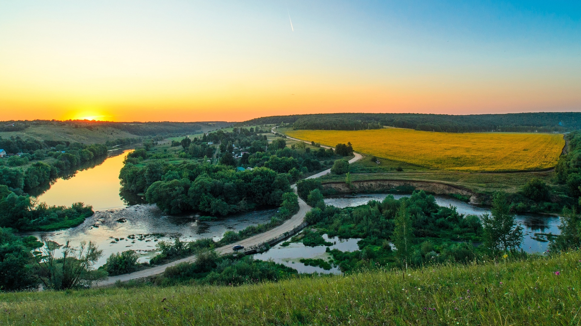 1 张 高清晰金色夕阳下的绿山壁纸 : 943725