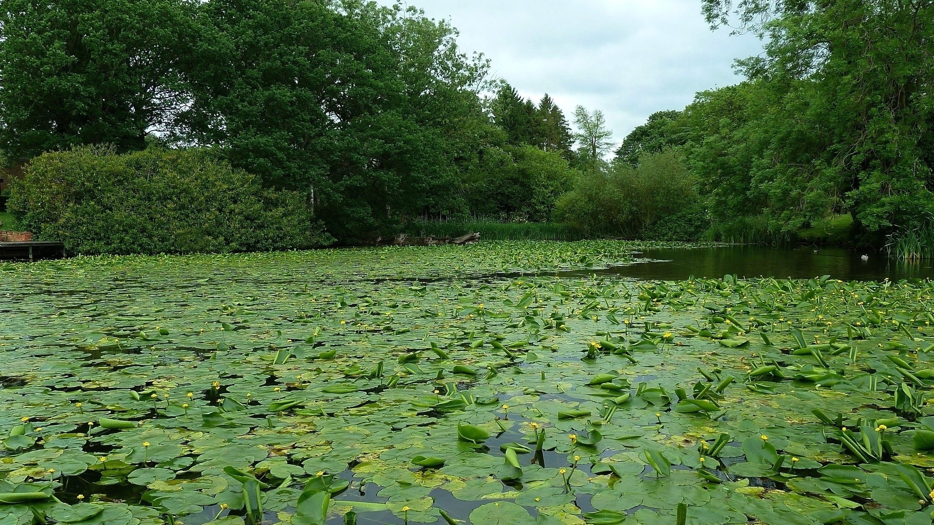 1 张 高清晰大桥丛林池塘睡莲壁纸 : 949849