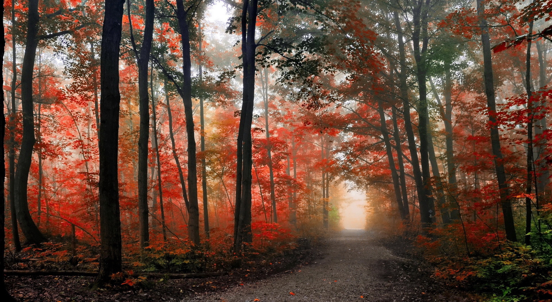 1 张 高清晰秋季森林落叶路壁纸 : 966894