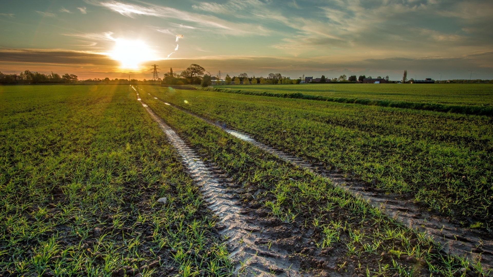 1 张 高清晰绿色田野车轮黄泥路壁纸 : 954865