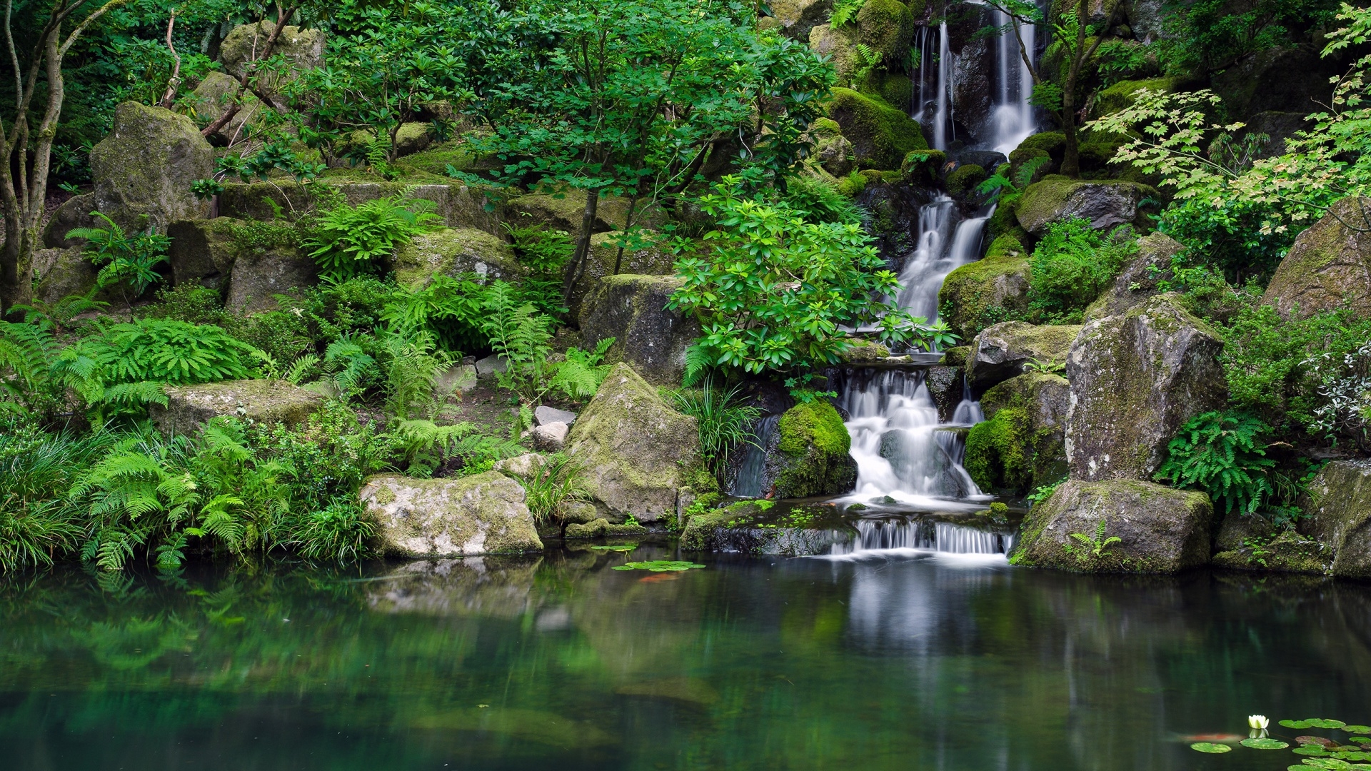 1 张 高清晰森林岩石瀑布壁纸 : 945035