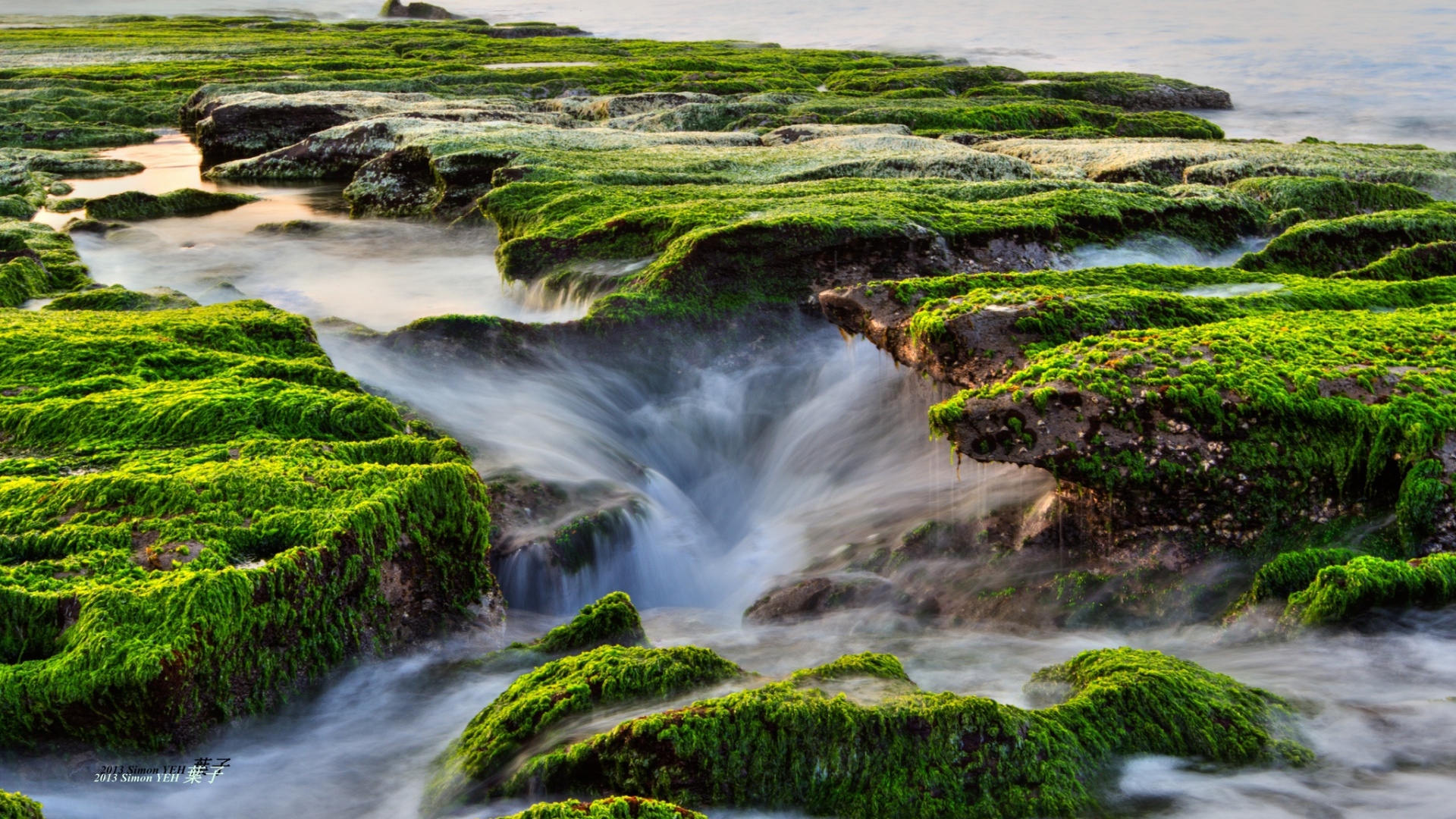 1 张 高清晰绿色苔藓小溪壁纸 : 945374