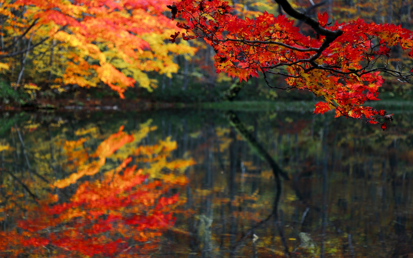 1 张 高清晰枫树林雪山湖壁纸 : 957542