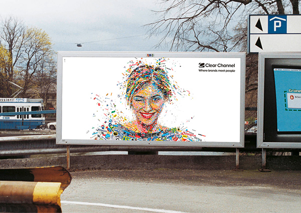 7 张 瑞士户外广告世界领袖的广告宣传-五颜六色的马赛克人脸画像拼图 : 951124