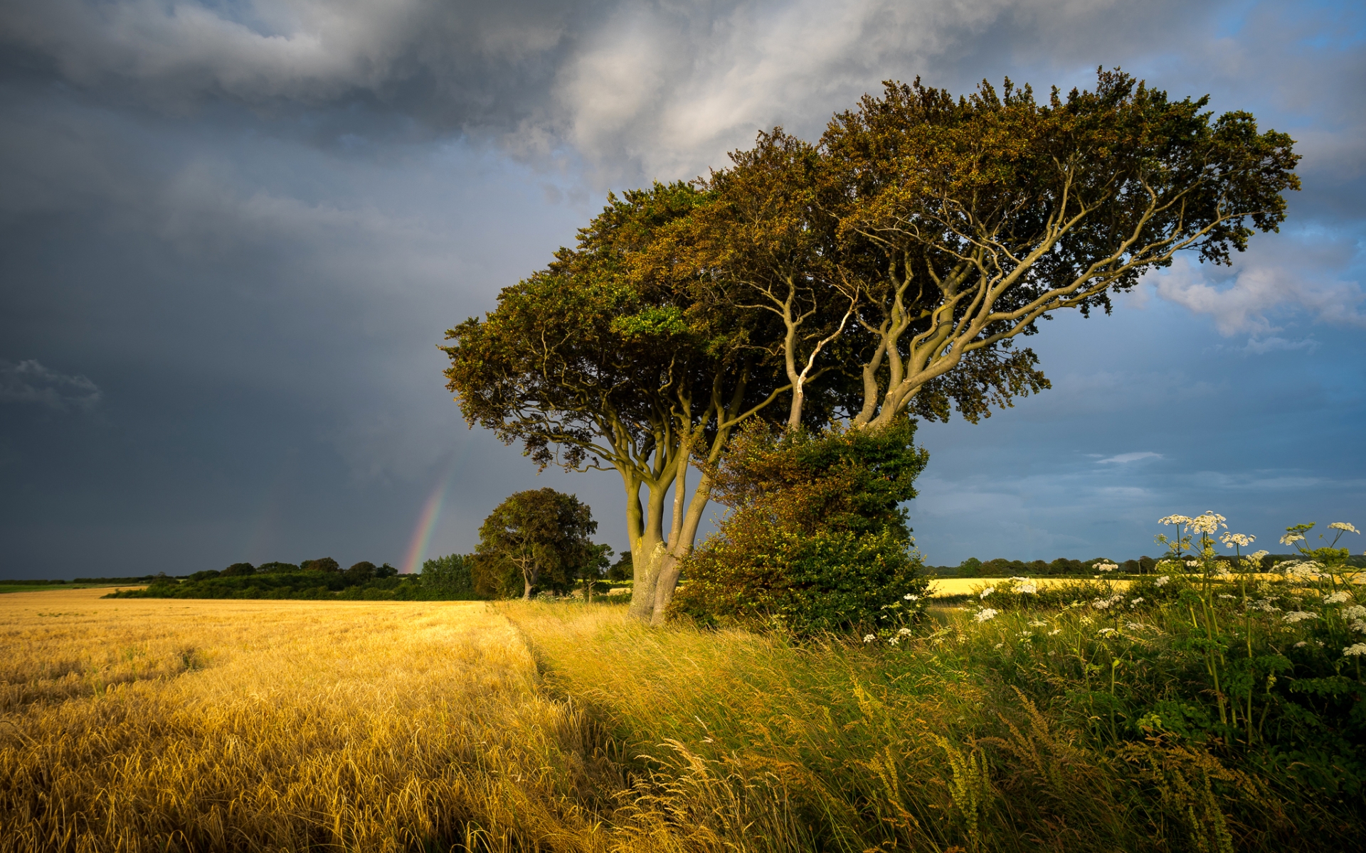 1 张 高清晰草坪上倾斜的大树壁纸 : 912576
