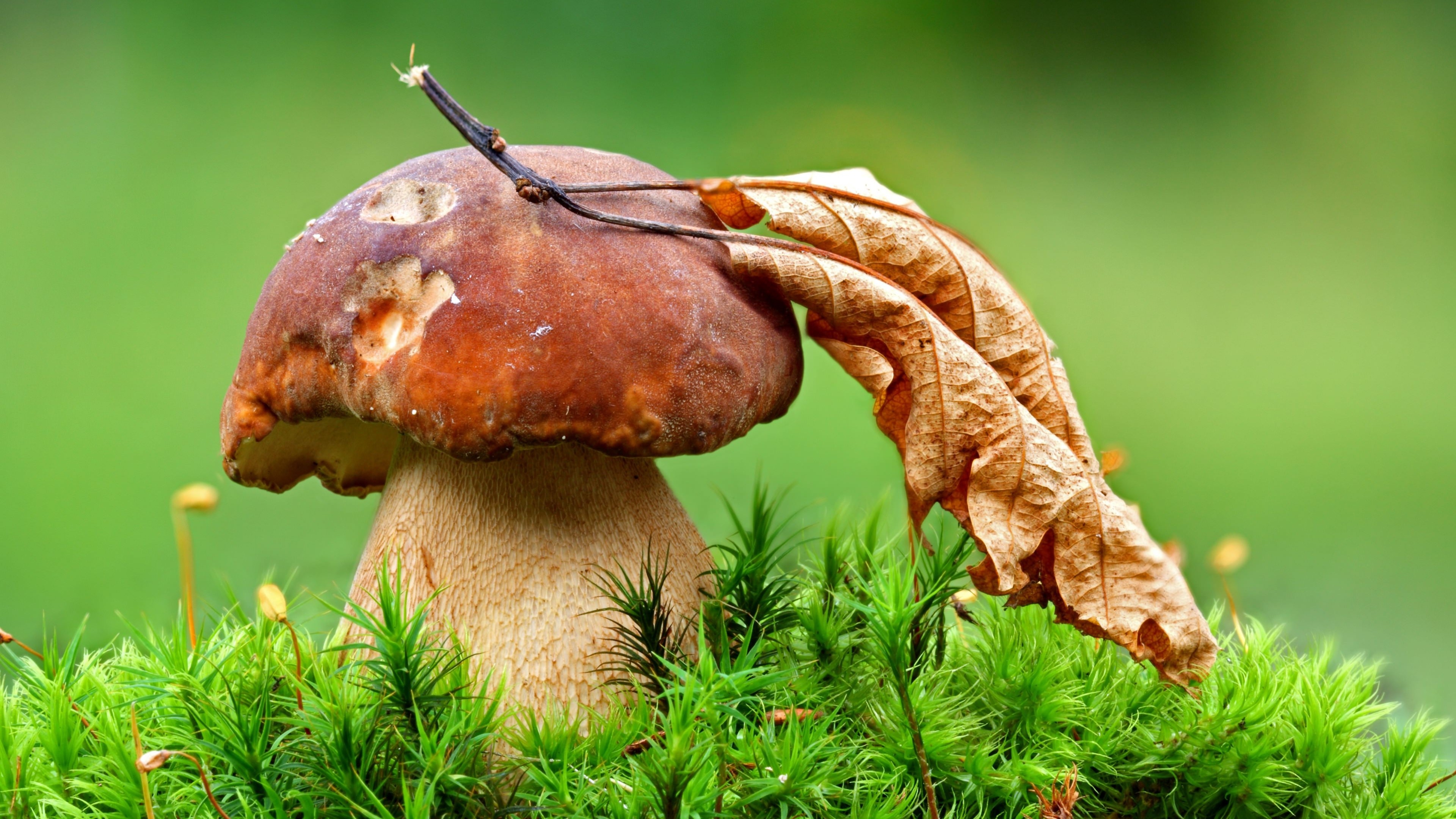 1 张 高清晰蘑菇上的枯叶壁纸 : 956746