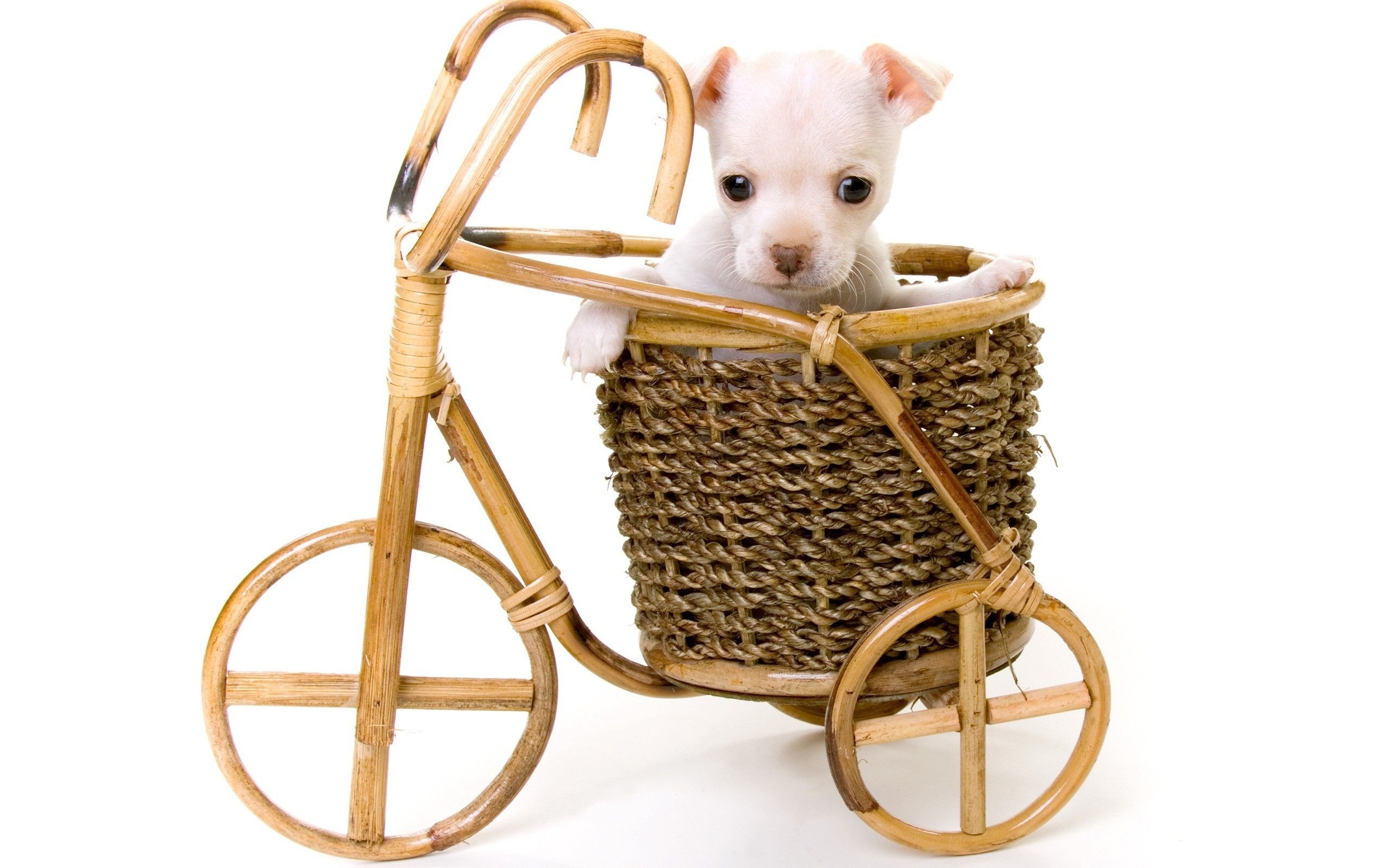 1 张 竹编三轮车中的白狗 : 958464