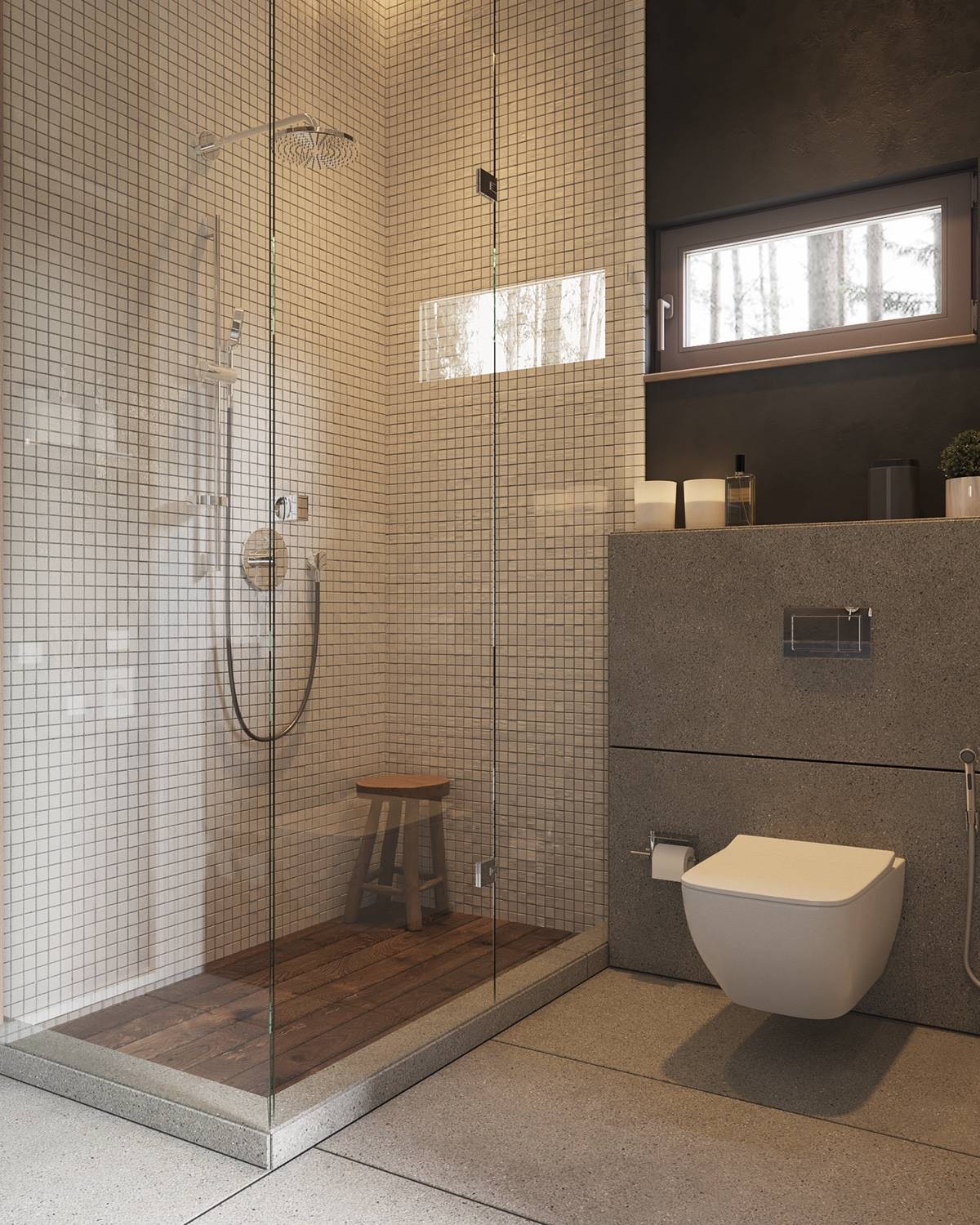 41 张 结合玻璃墙房间的混凝土单色内饰 : 988281