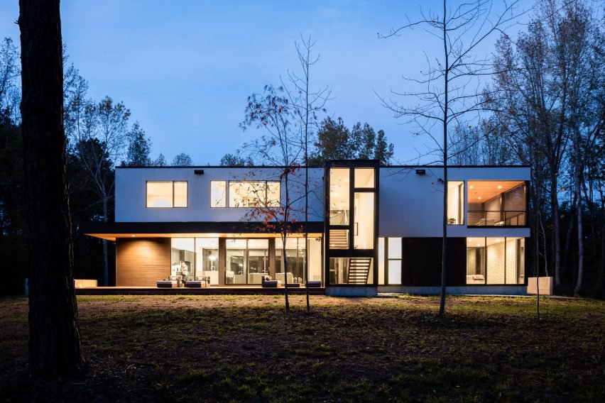 17 张 西班牙紧凑型白色立方几何形状住宅建筑-坐落在可以俯瞰巴塞罗那城市的地方,房子建在一块非常小而倾斜的松树林山谷间 : 928006