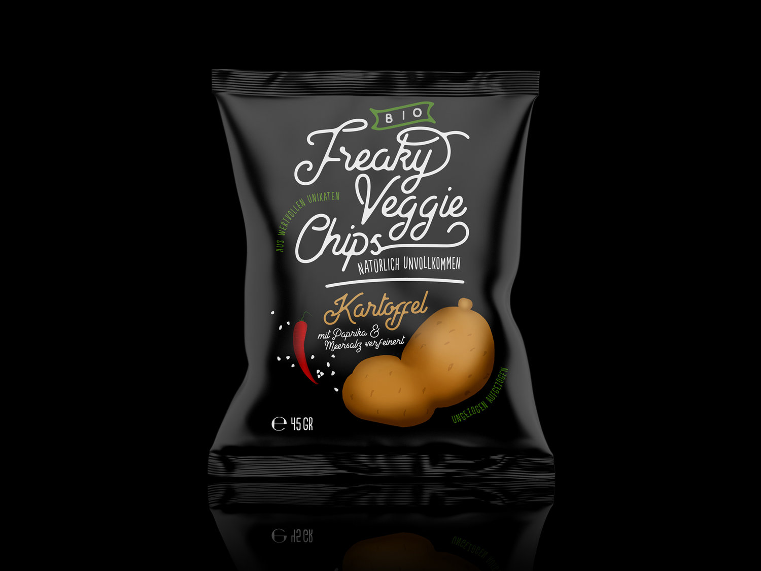 6 张 怪异的素食薯片-美味的薯片小吃,探索了一种旨在食用废弃物的产品,其包装解决方案包含手工制作的感觉 : 961362
