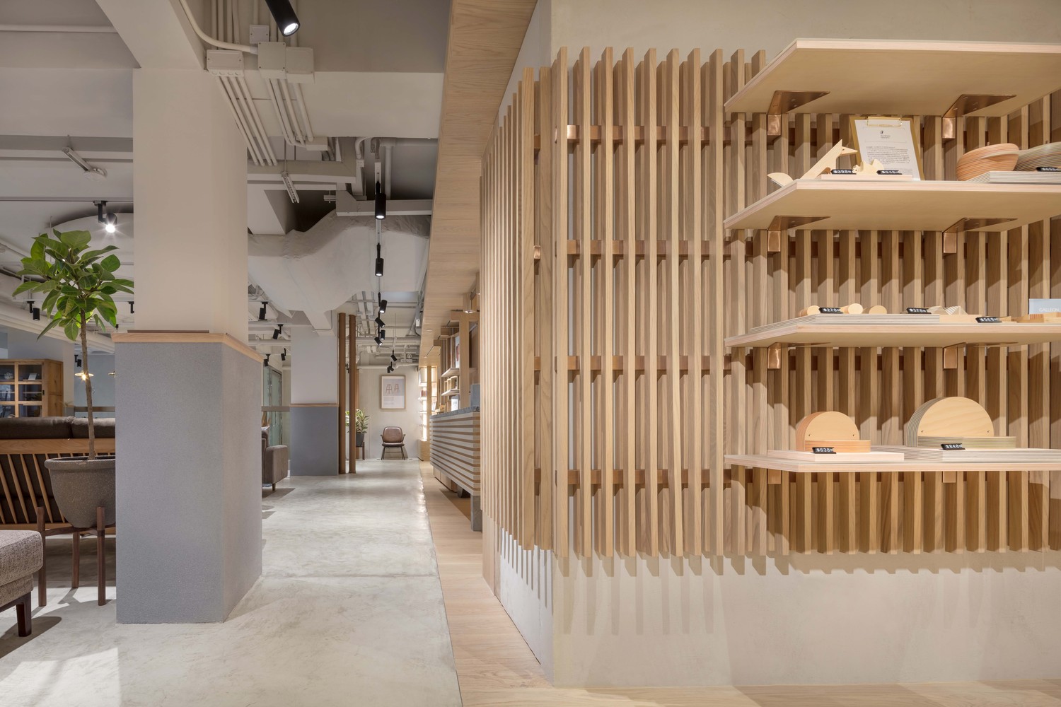 整体设计概念经过 STUDIO ADJECTIVE 团队的研究,认为木是家具的原材料, 有密不可分的关系,因此决定以「木・细节与工艺」为主要设计概念, 透过店内外的设计、整体室内空间的布局以及度身订造放置家具的陈列架,体现设计师在店内如何对木材的选取及运用,将木的用法推向更深层次,务求将店铺塑造成一个舞台般,令每件家具都能充分发挥,让顾客感受到寻找个人美学之旅的同时在细节中看到 ADJECTIVE 团队对设计的一丝不苟和尊重。