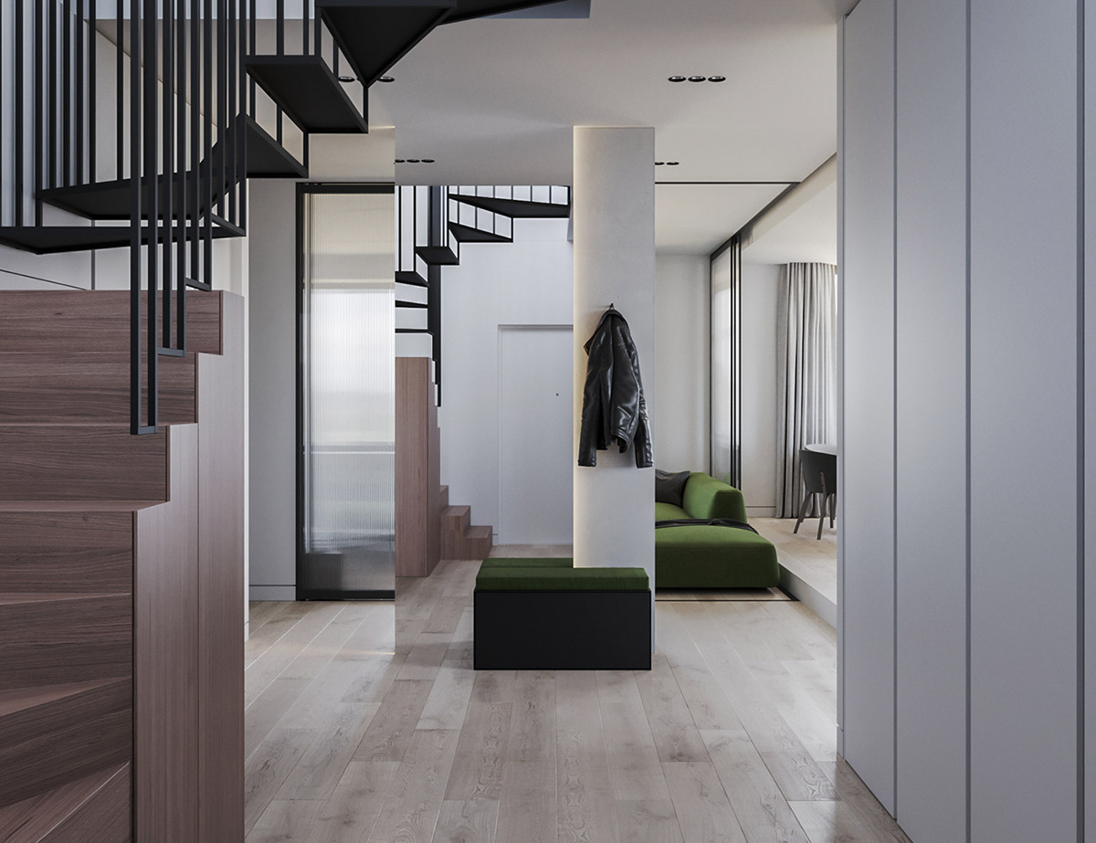 7 张 黄金立方体复式公寓-一个宽敞的两层楼,围绕着一双高度黄金立方体,设计师把两个不同的家庭连接在一起,通过一个新的卧室和楼梯来连接 : 959363