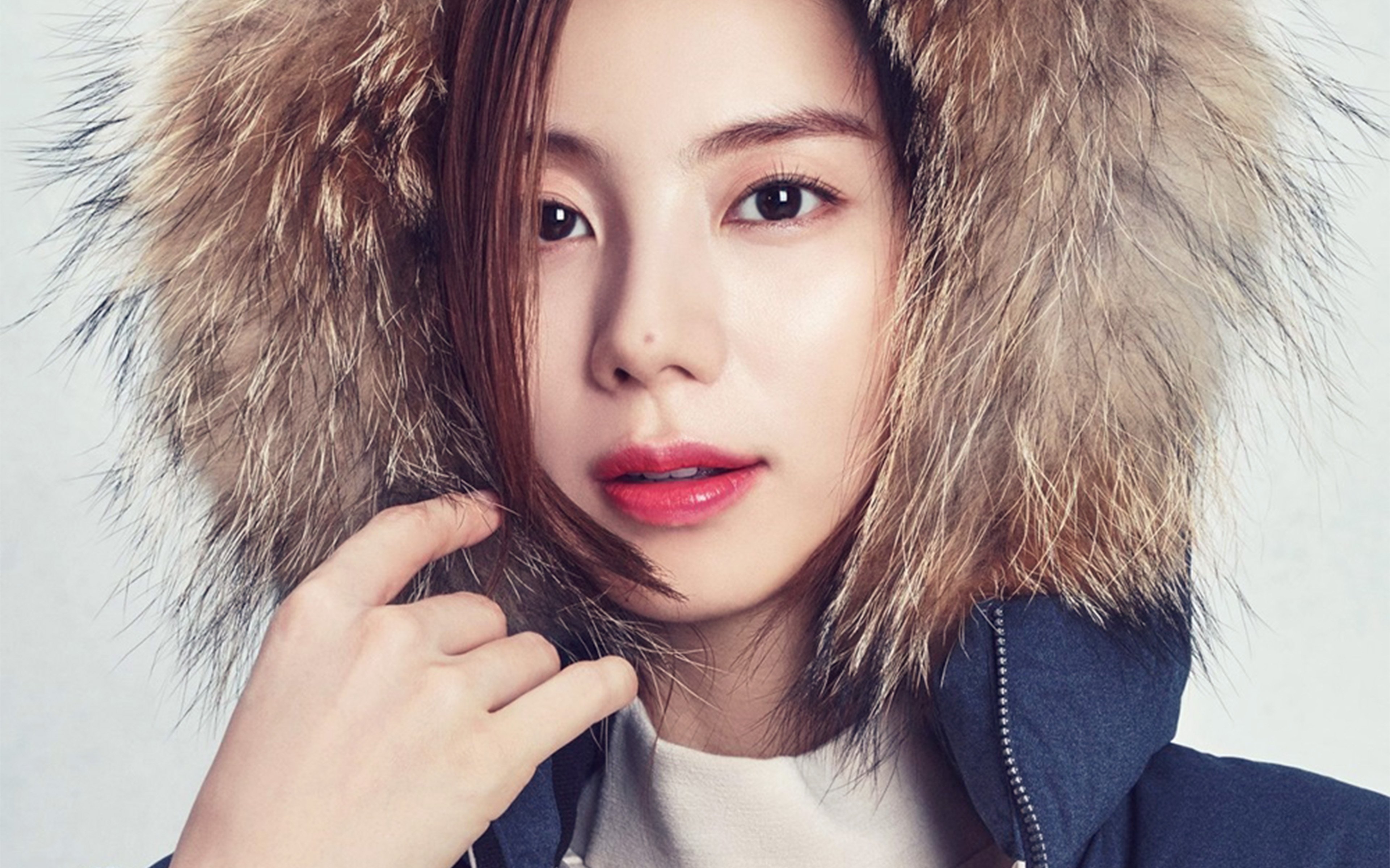 1 张 高清晰冬季戴羽绒帽的女孩壁纸 : 966653