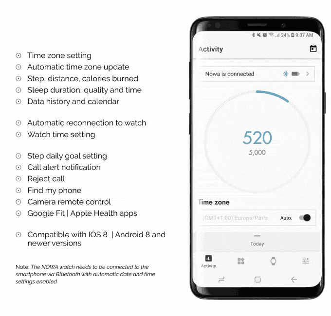 Superbe由CR2025电池供电,在“智能模式”下持续8个月,如果用作常规时计则为2年。这款手表还具有3ATM的防水功能,可以在健身房或雨中穿着,就像任何好的手表一样。厚度不到10毫米,Superbe比大多数智能手表更薄,并配有蓝宝石涂层矿物玻璃。 Superbe有6种颜色可供选择,黑色和白色之间有哑光和金属色调。 Superbe的风格绝对是当代经典,它还具有运动意大利皮革乐队或米兰金属网带的能力。 Superbe腕表的设计旨在体现外部的巴黎风格,内部采用尖端技术,是一款兼具风格和精通技术的手表