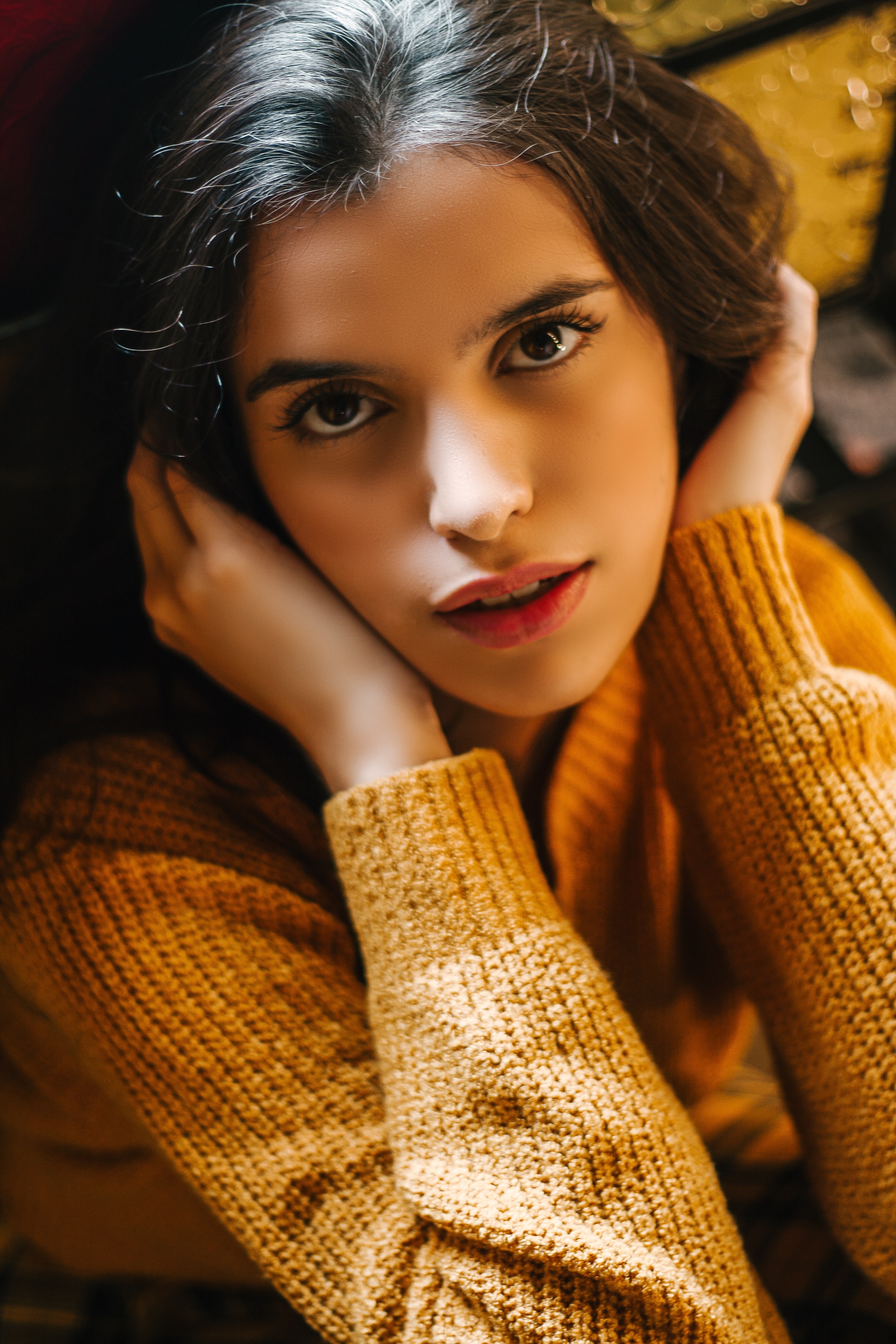 1 张 双手捧脸的针织女郎 : 971066