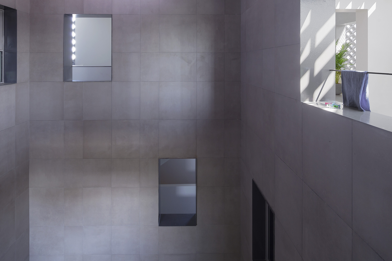 这栋建筑为了应对附近区域的多种建筑风格,设计了围合住建筑边界的混凝土砖墙,以保留不同程度的隐私。