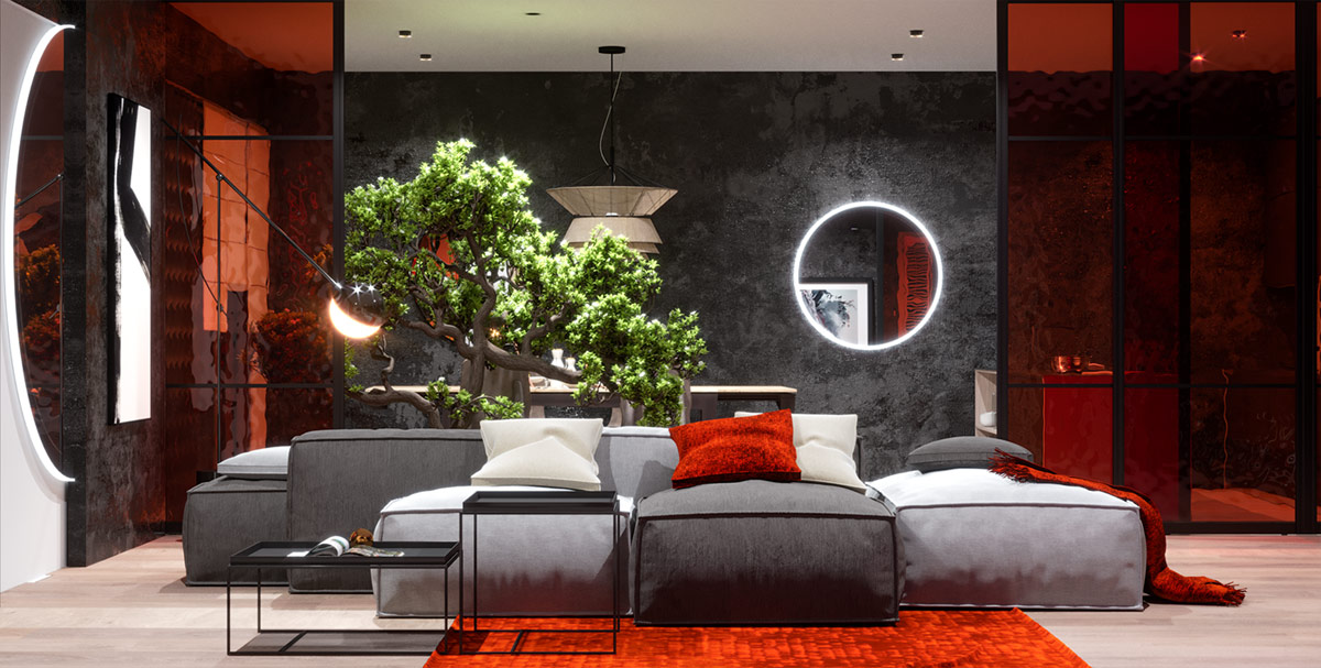 36 张 受日本影响的现代红色灰色内部空间设计 : 971603