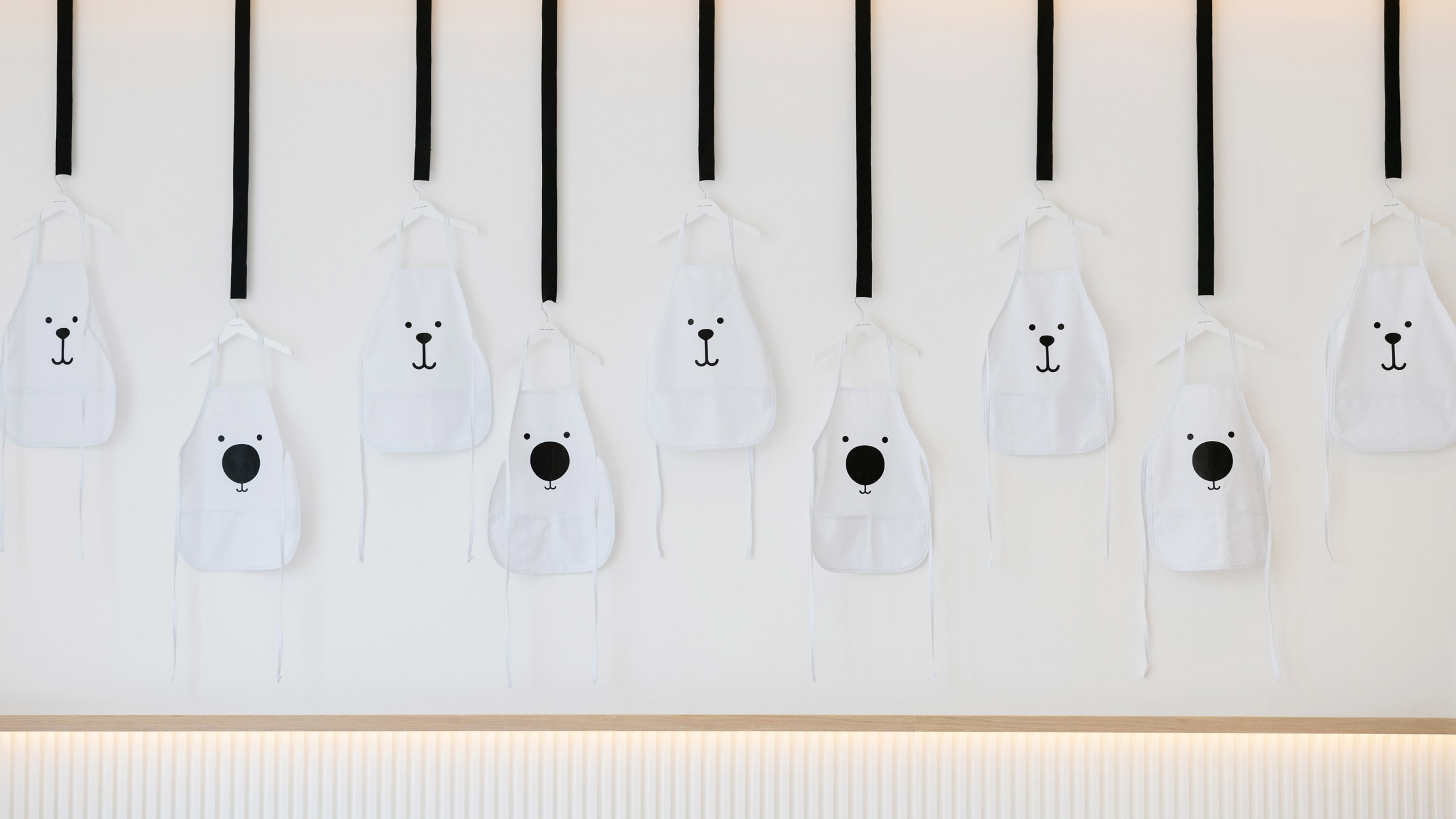 一些椅子的弯曲臂和后中央腿看起来像大象,一群鸟形吊灯和印有偷看熊的镜子也被用来为这个空间带来一种有趣的感觉