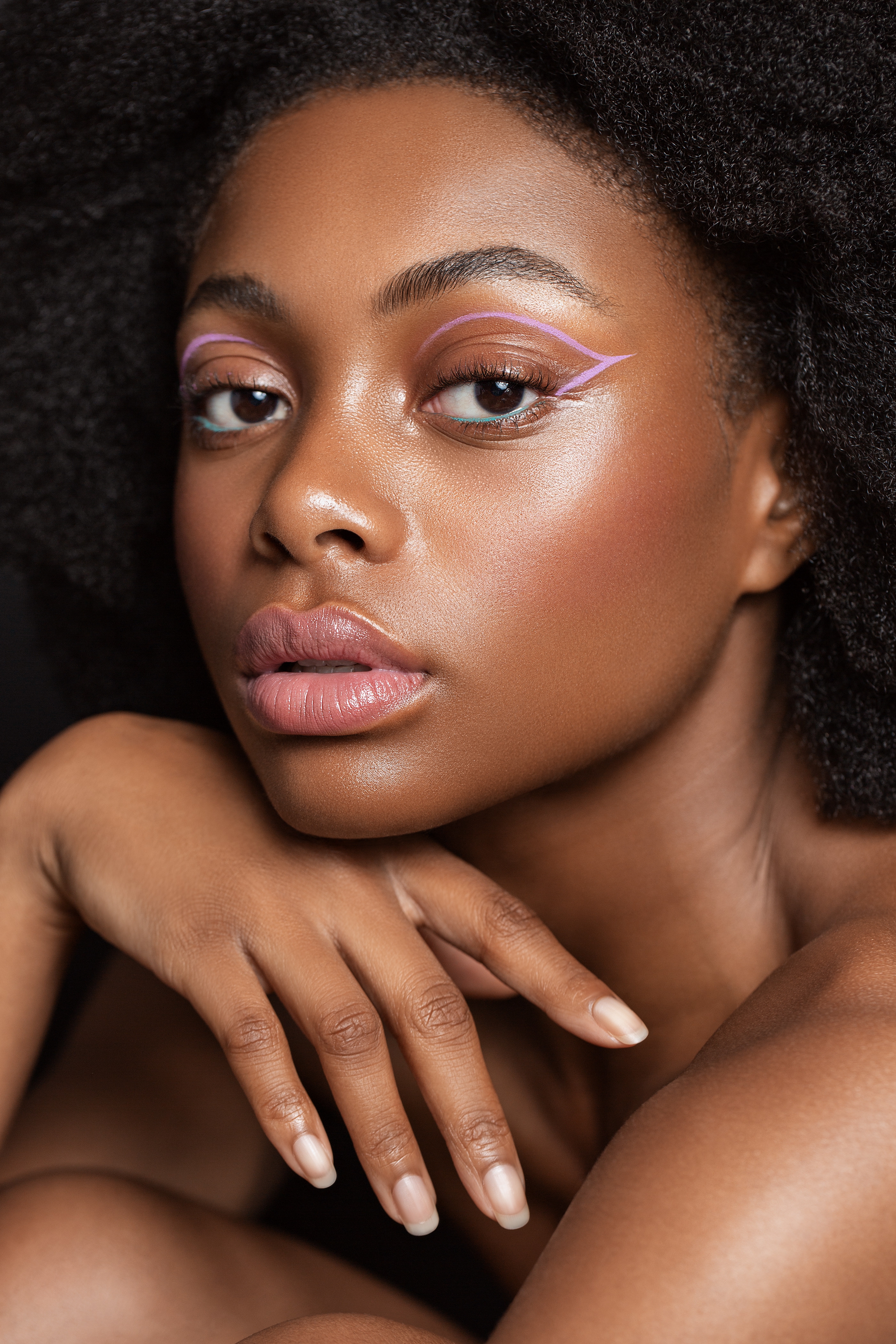 5 张 油滑黑珍珠的魅力-高光泽度的流行视觉人像,宝石色调的眼影 : 915244