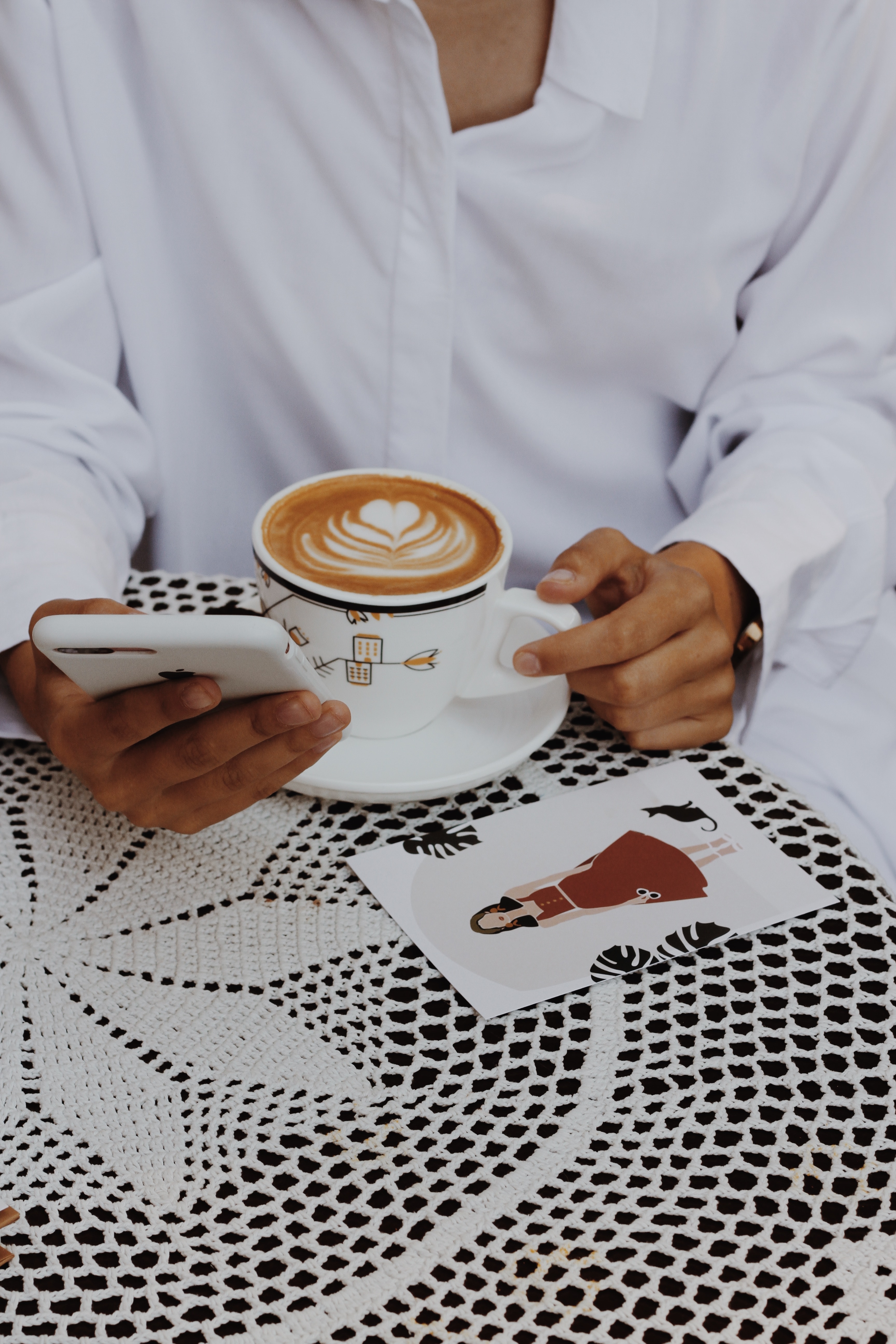 1 张 喝拉花咖啡玩手机的女子 : 977280