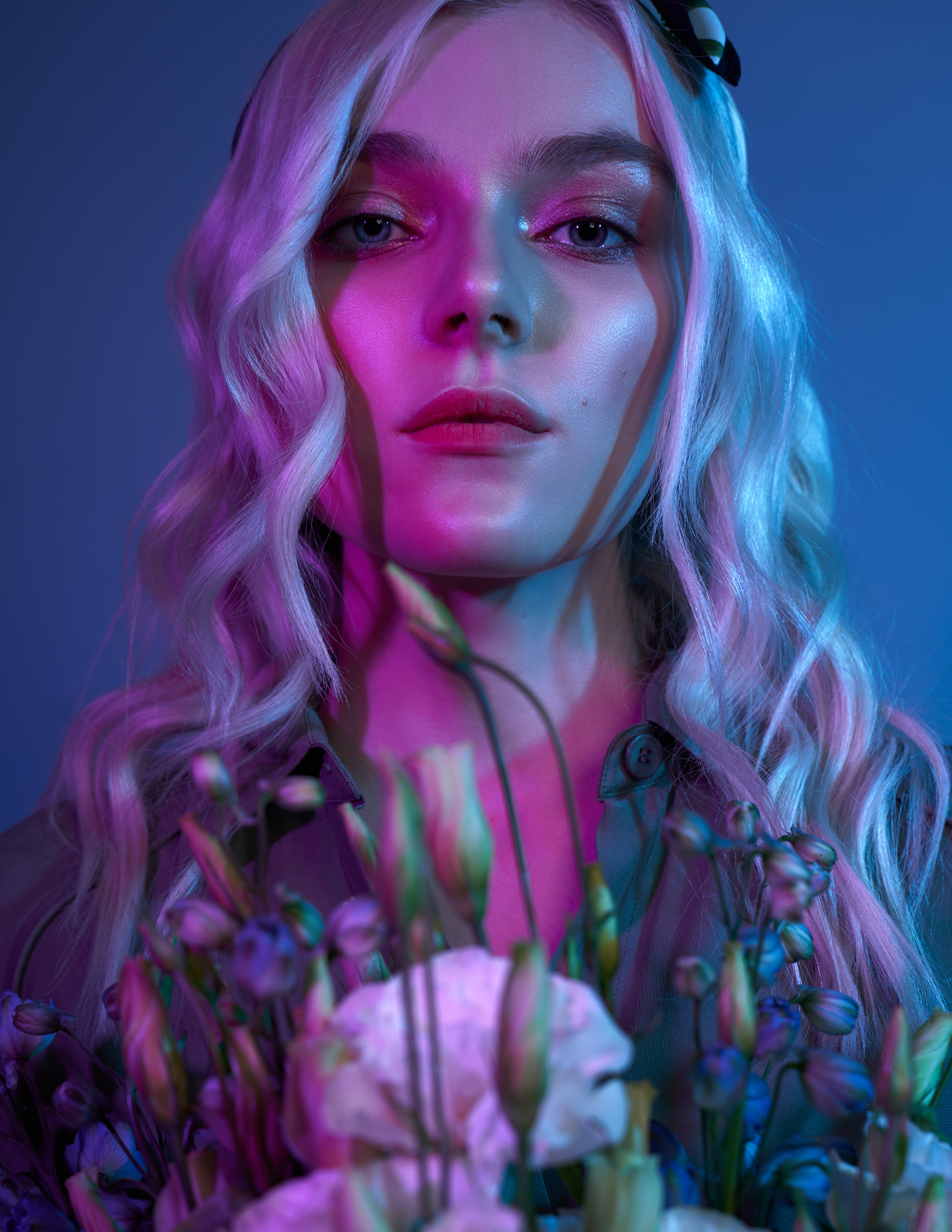 1 张 手拿紫花的蓝发鼻环女郎 : 987747