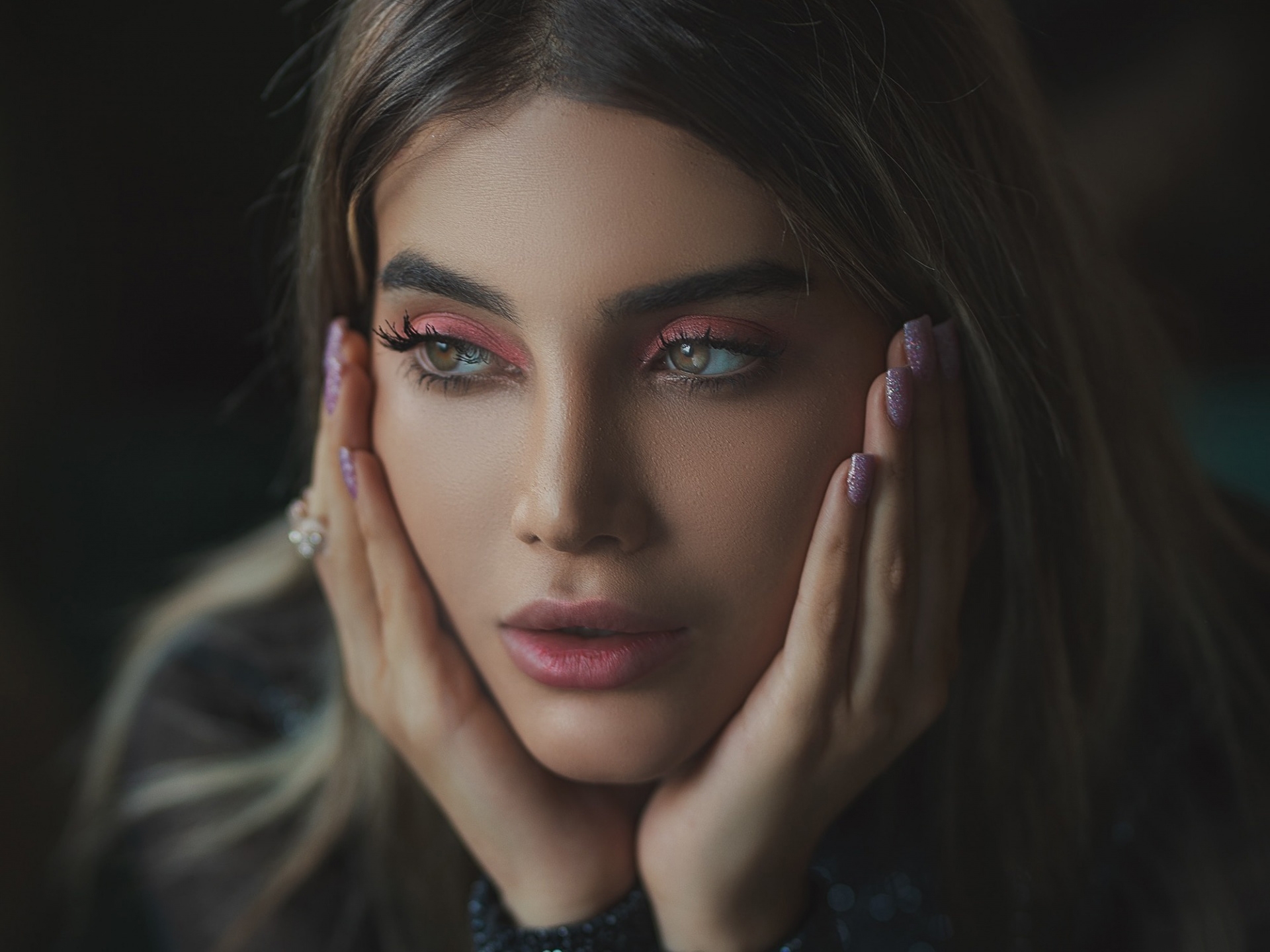 1 张 双手捧脸蛋的美甲女人 : 977514