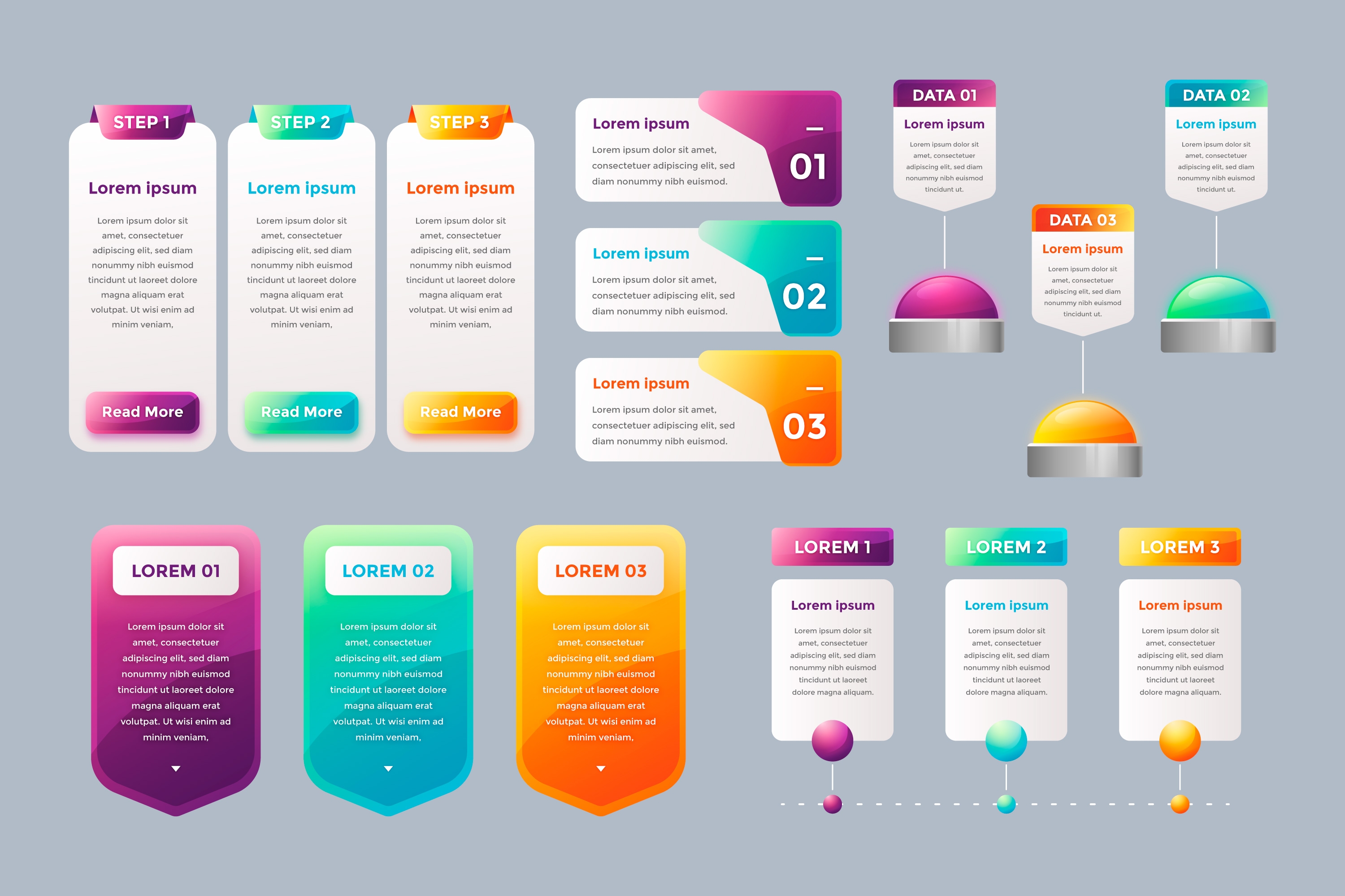 1 张 五彩的信息图表步骤模板素材下载 : 980672