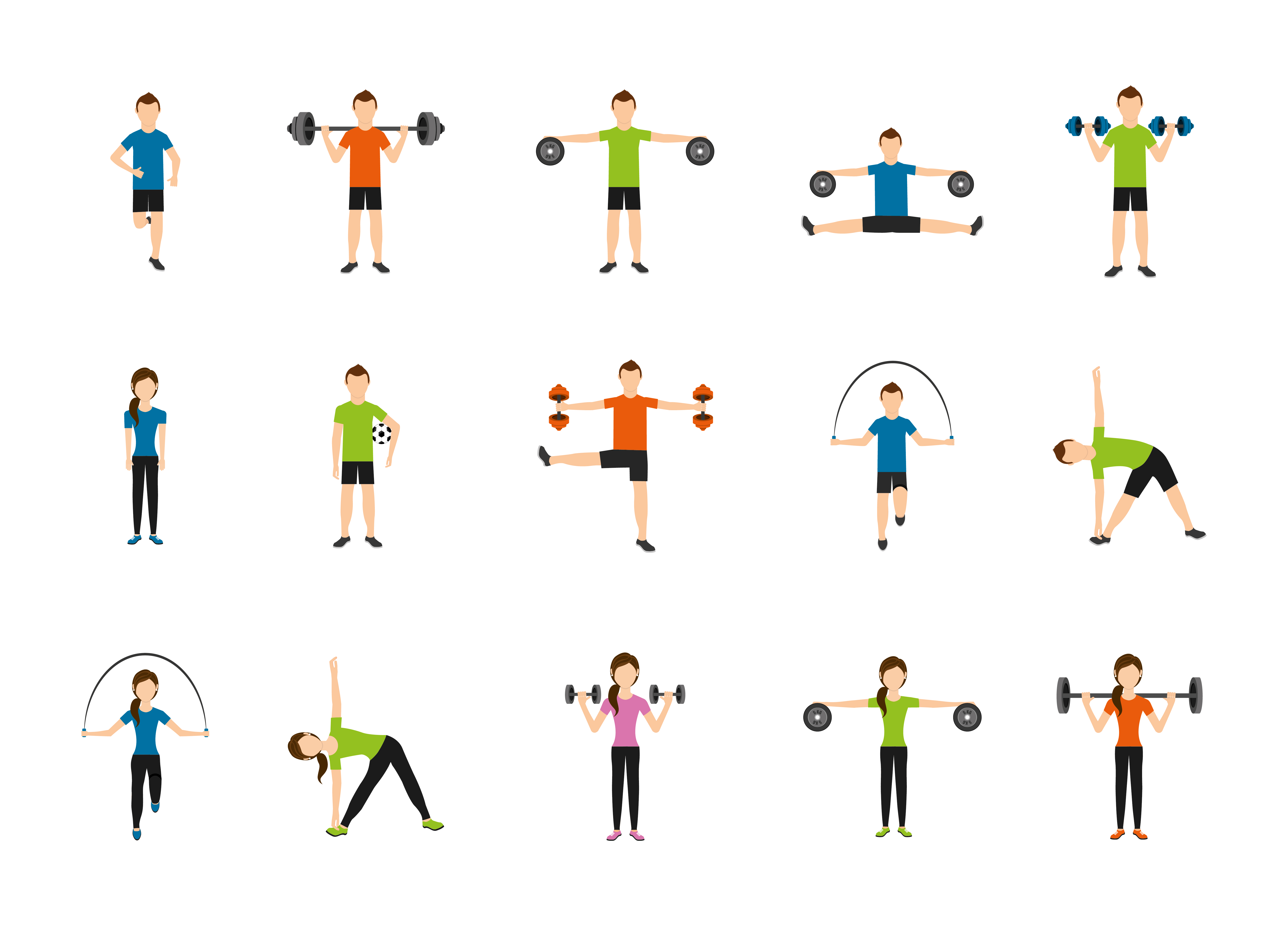 1 张 健身房各种形态的锻炼卡通素材 : 985250