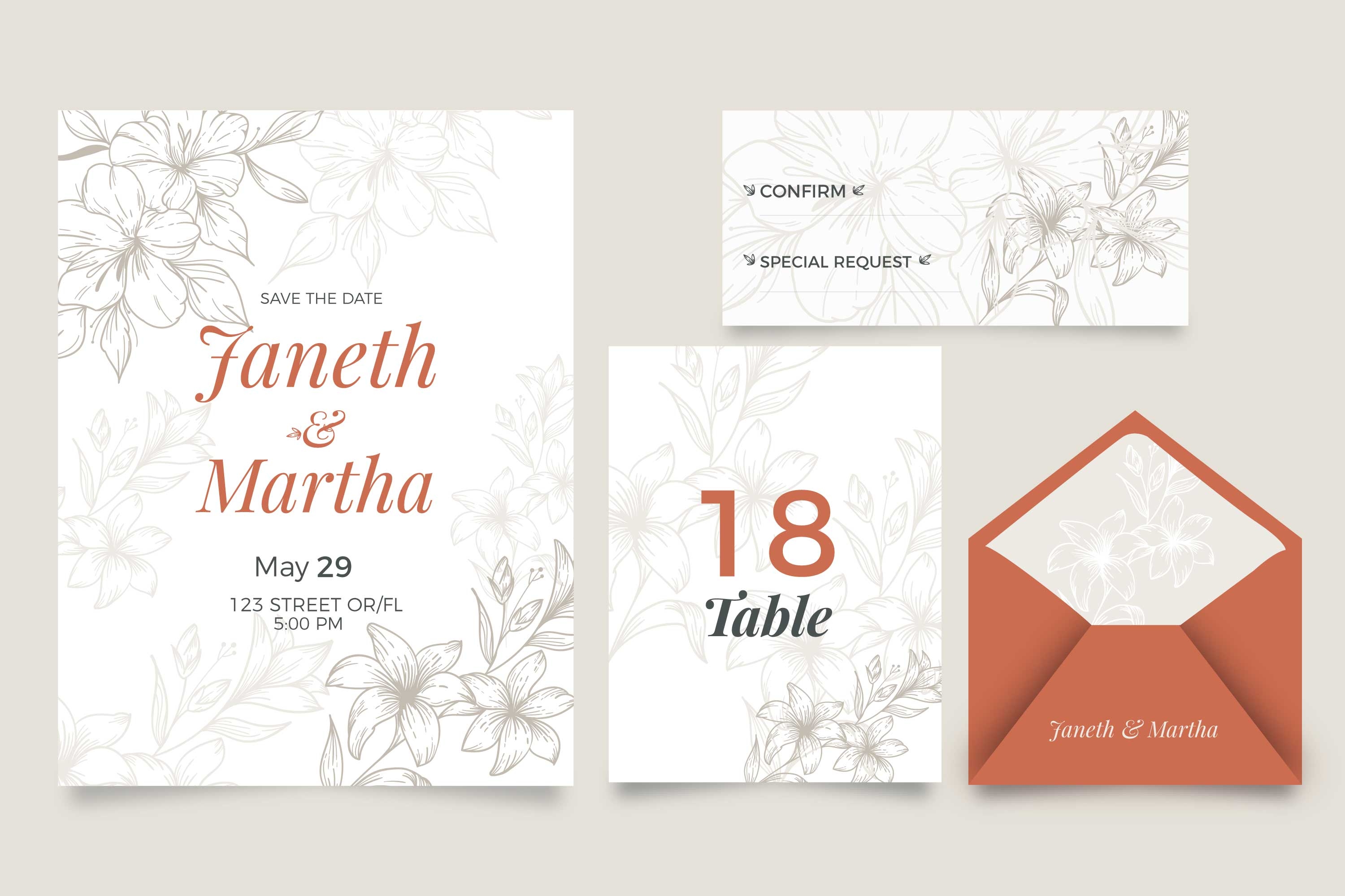 1 张 花卉邀请函信封婚礼文具模板 : 984954