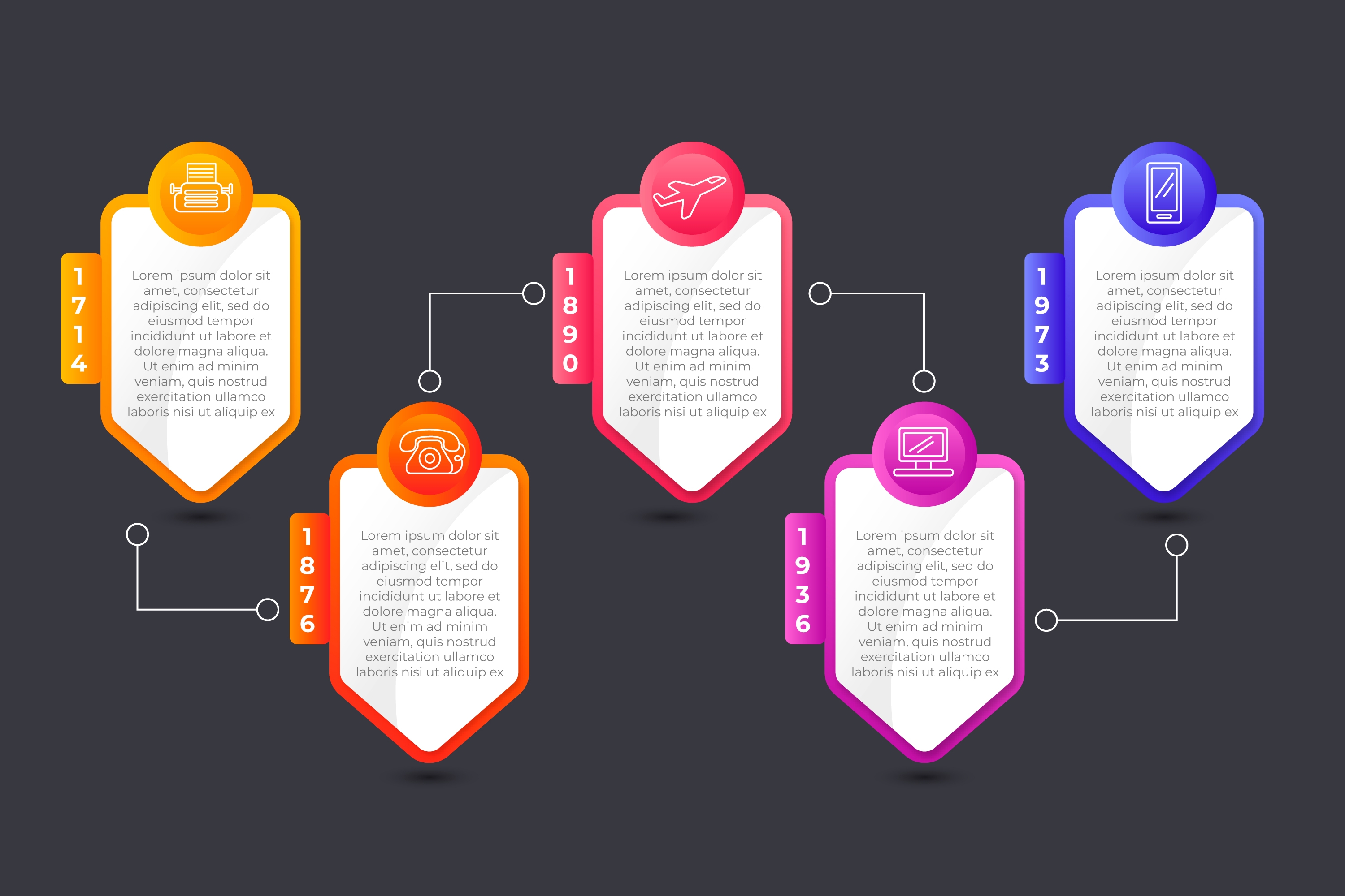 1 张 五彩渐变历史时间线图表模板 : 981126
