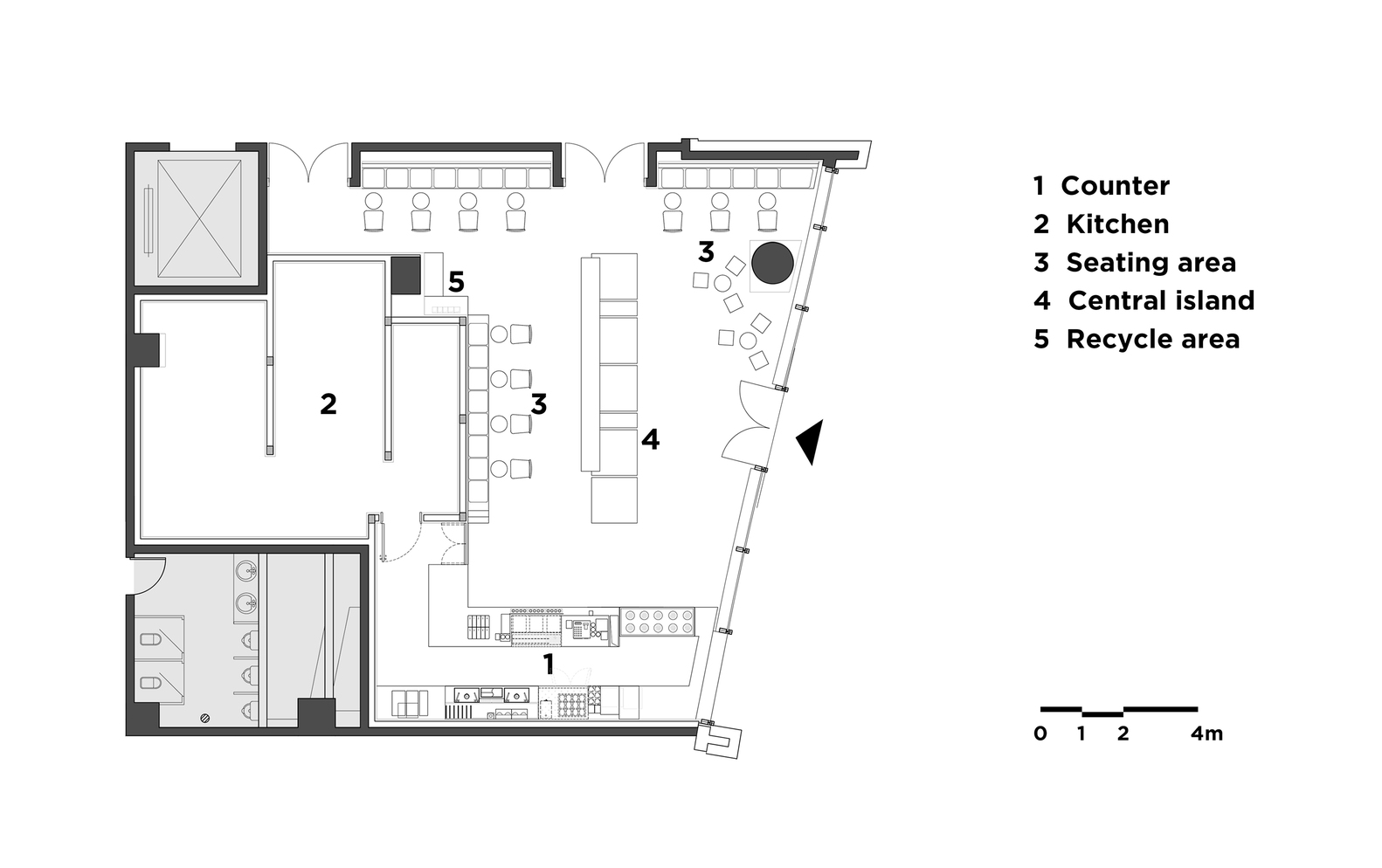 设计师将空间的功能区域如自助台等隐藏于纵横台阶之间,并为品牌方特别设计定制了一款茶具用于向顾客展示其采自不同产地的茶叶。