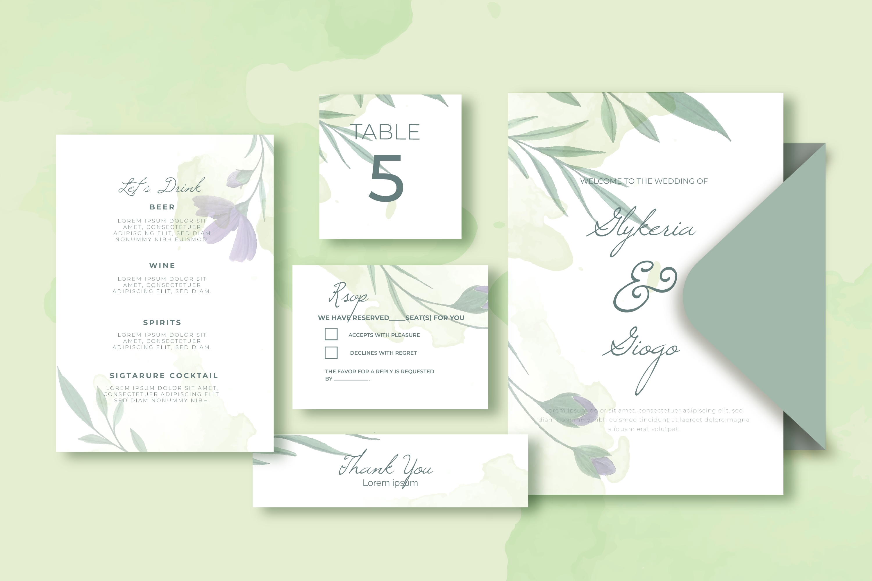 1 张 绿色婚礼信封卡片素材下载 : 981676