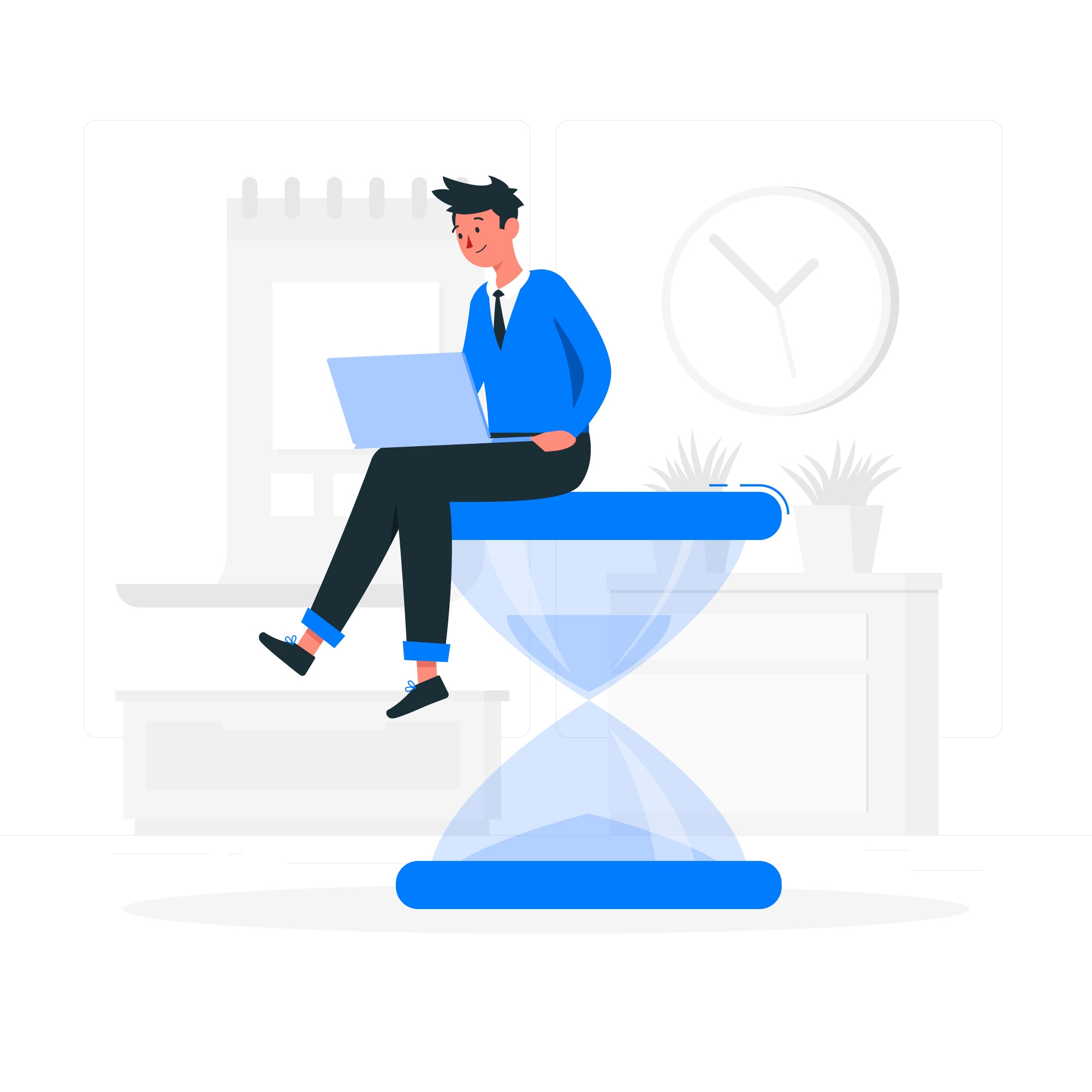 1 张 坐在沙漏上用笔记本工作的卡通IT人士 : 984988