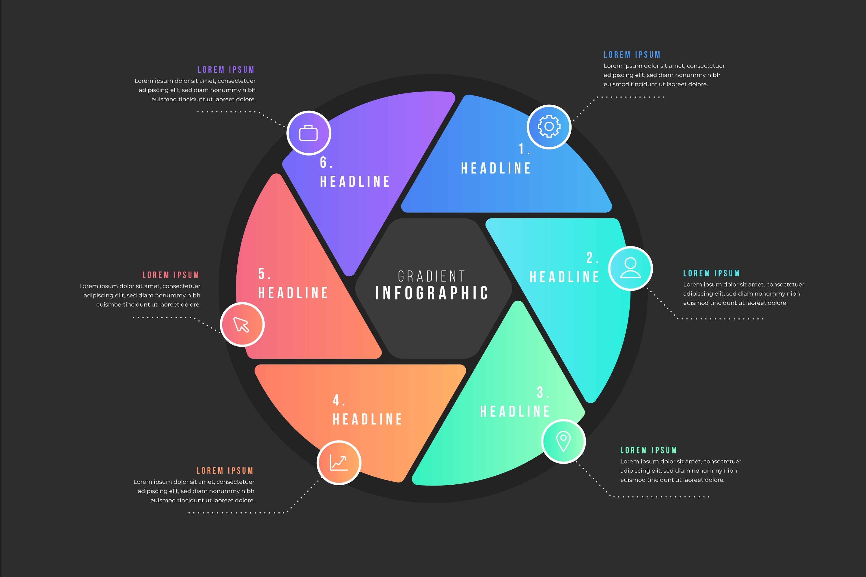 1 张 切割成六大块的圆形信息图表 : 987235