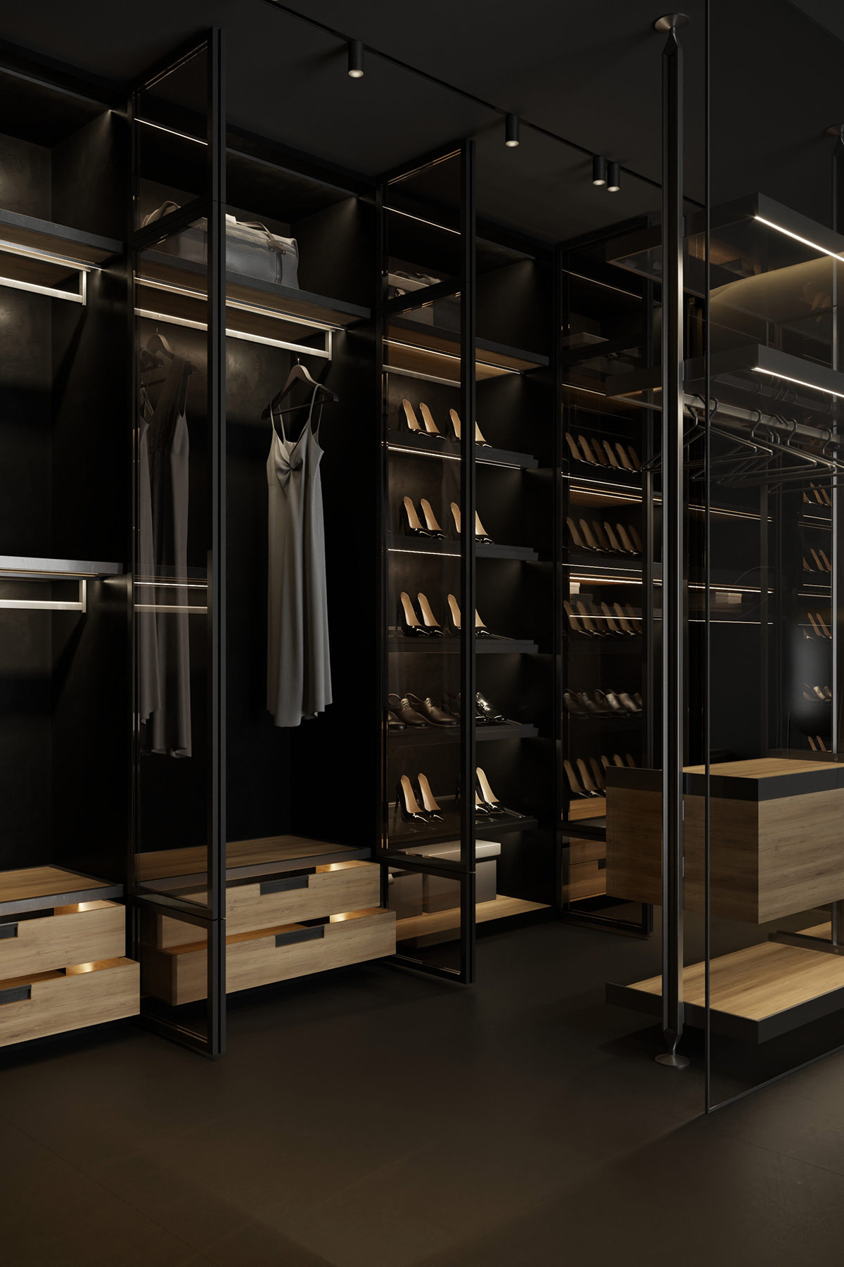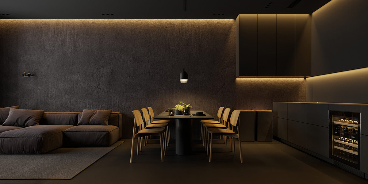 38 张 用黑色和灰色装饰塑造的深色光滑室内设计 : 988405