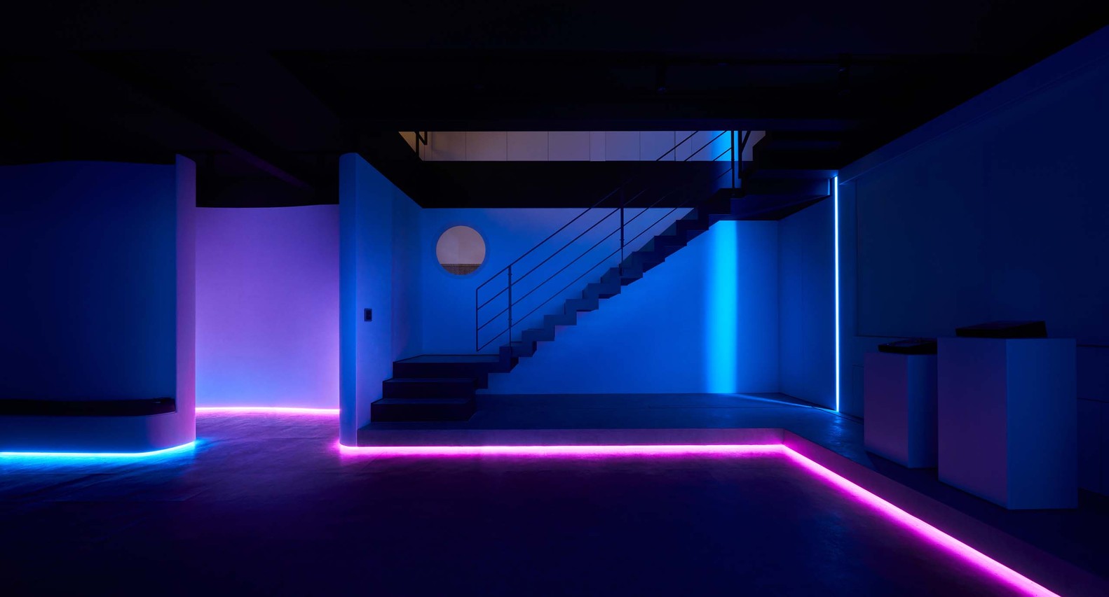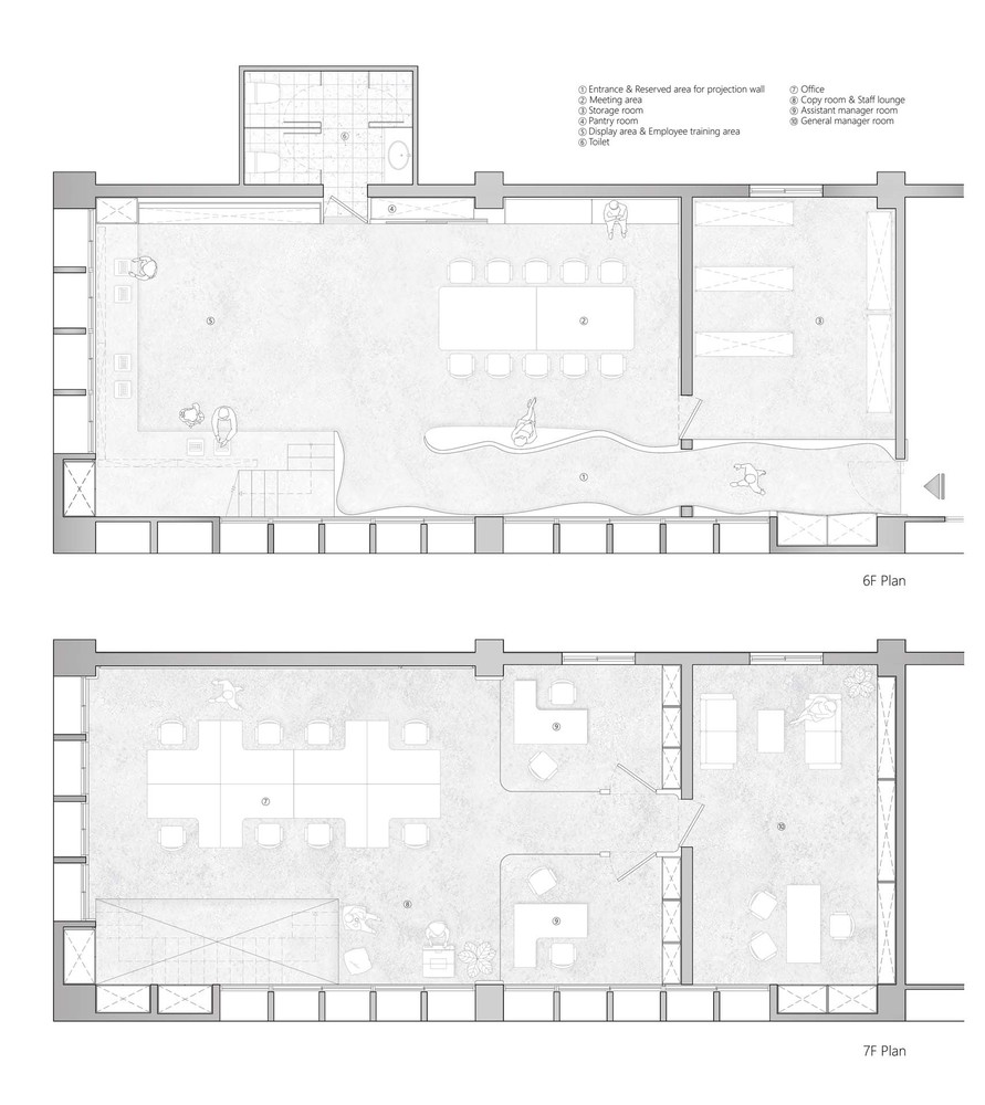 • 通过动线规划将展售行为重新围塑,利用开放空间里采光的明暗对比,区划出办公空间并把会议及展示空间加以融合,借此打破会议和销售行为之间的藩篱,拉近产品与客户之间的沟通距离。并保留复层的过道梯间让展示行为融入其中,作为产品陈列时的展示延伸。