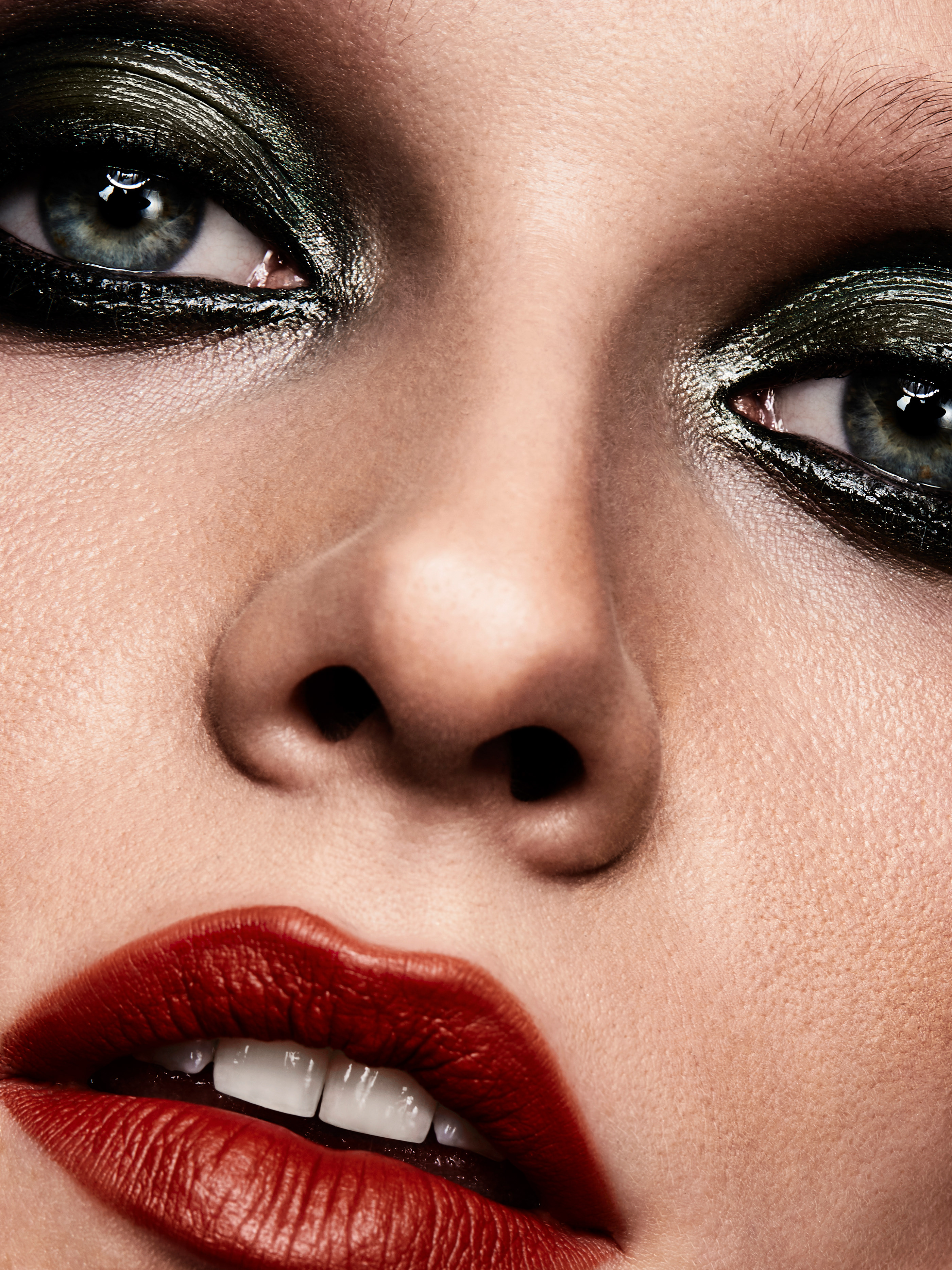 7 张 写在脸上的时间-闪闪发光的眼影,大胆的红色唇膏,一副迷人的黑发彩妆美拍 : 958204