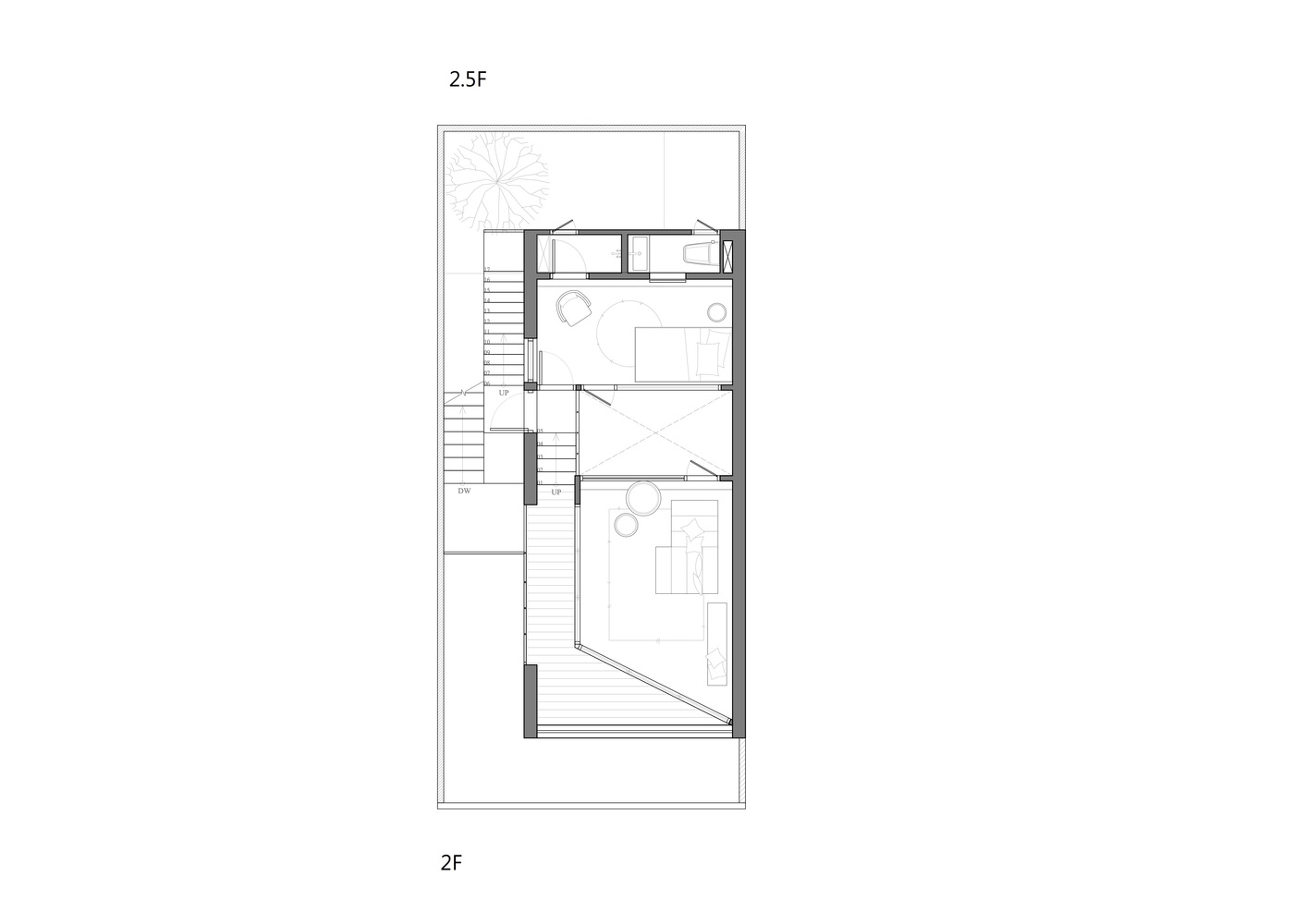14 张 房间宽不到两米内的东京房子-复式地板创造了不同的自然分区空间。这减少了屋内的墙壁,有助于使小房间感觉更慷慨 : 947773