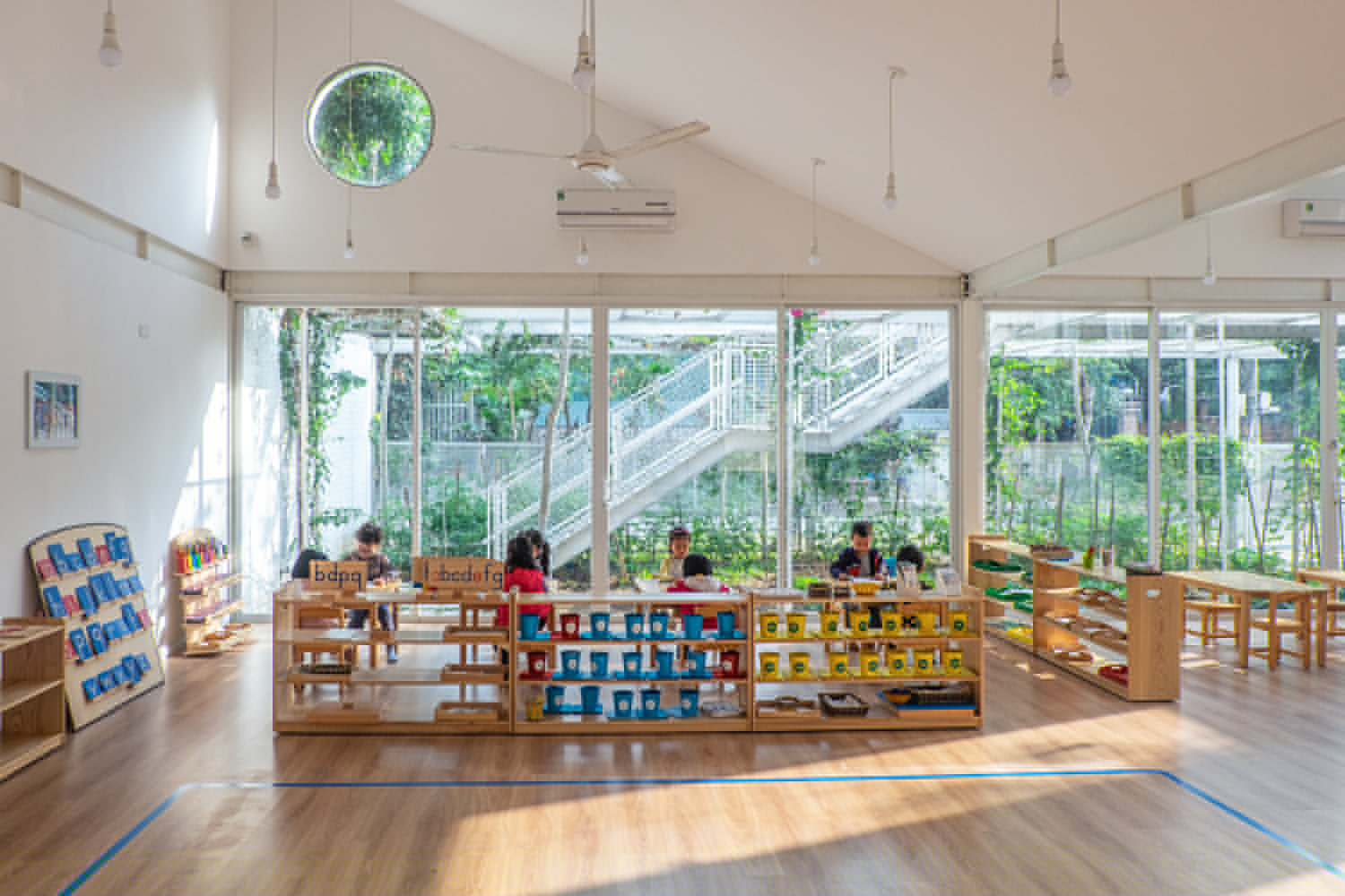 虽然场地仅有约600平方米,但投资者决定将50%以上的土地用于建造花园,创造与自然亲近的学习空间,让孩子们比普通班级更频繁地学习、联系以及与自然互动。