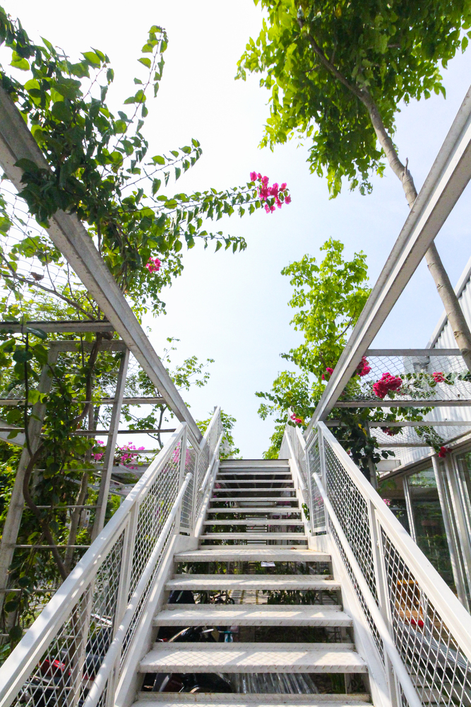 最后,我们选择了钢结构支撑,因此我们建立了两个由花园环绕的钢框架。在这两个街区之外,我们采用了由钢架和金属丝网构成的网格系统,建立了两个种植有大树和藤蔓的花园,通过三个铁制楼梯和高架人行道连接,将两个花园连起来。孩子们可以在上下空间自由穿梭,在此过程中发现更多有趣的空间。他们可以到处跑,看看植物,触摸它们,观察植物的生长。在这个花园中,孩子们可以学习如何种植和照料水果、时令蔬菜和他们喜欢的花朵。