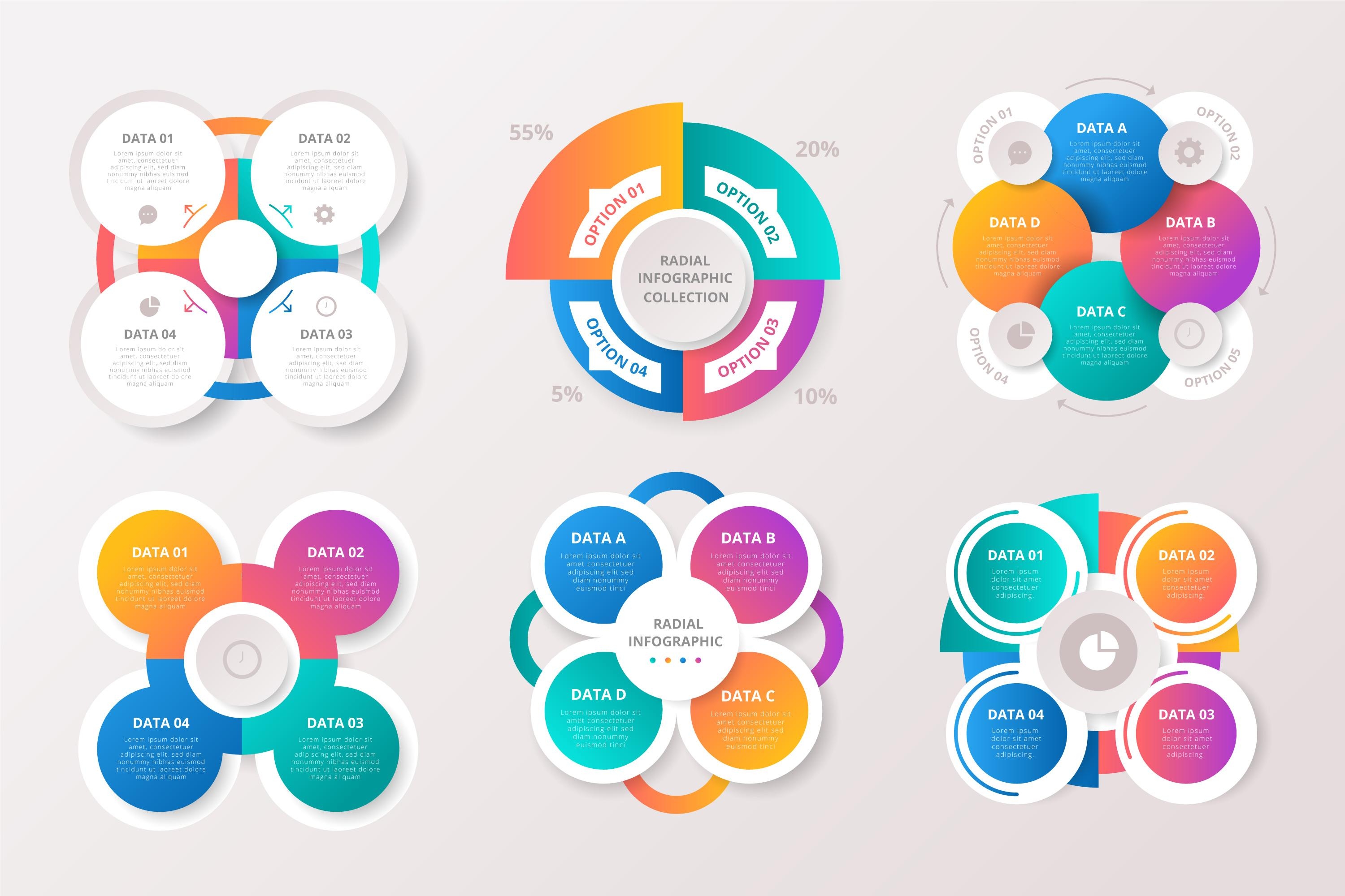 1 张 彩虹色的渐变径向圆形信息图集合元素 : 986997