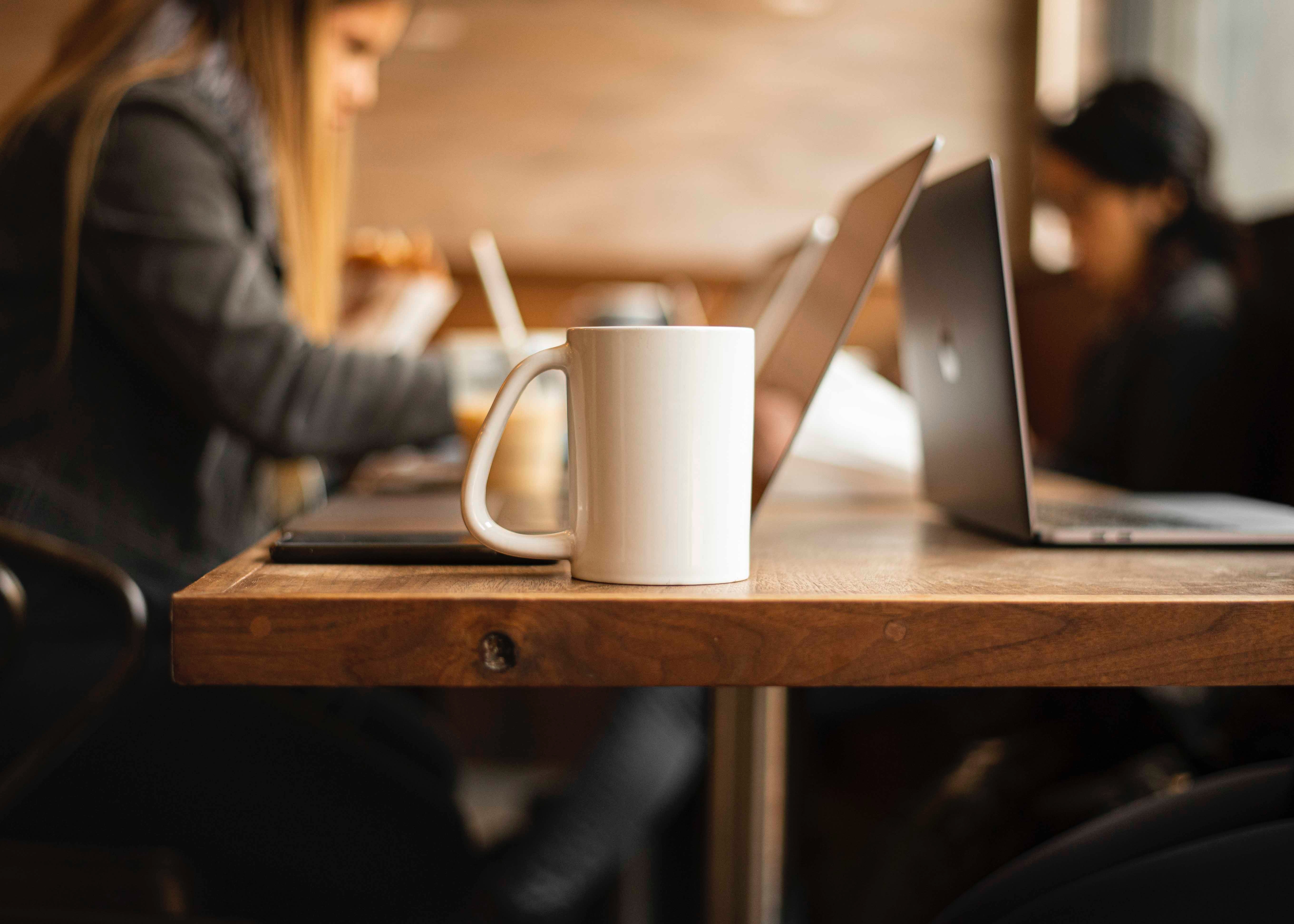 1 张 双手端蓝色咖啡牛奶的女子 : 980050